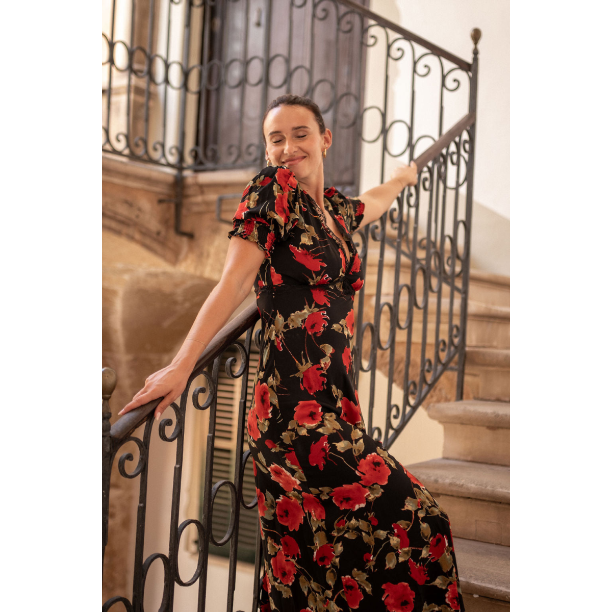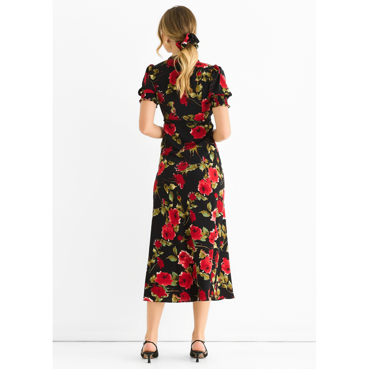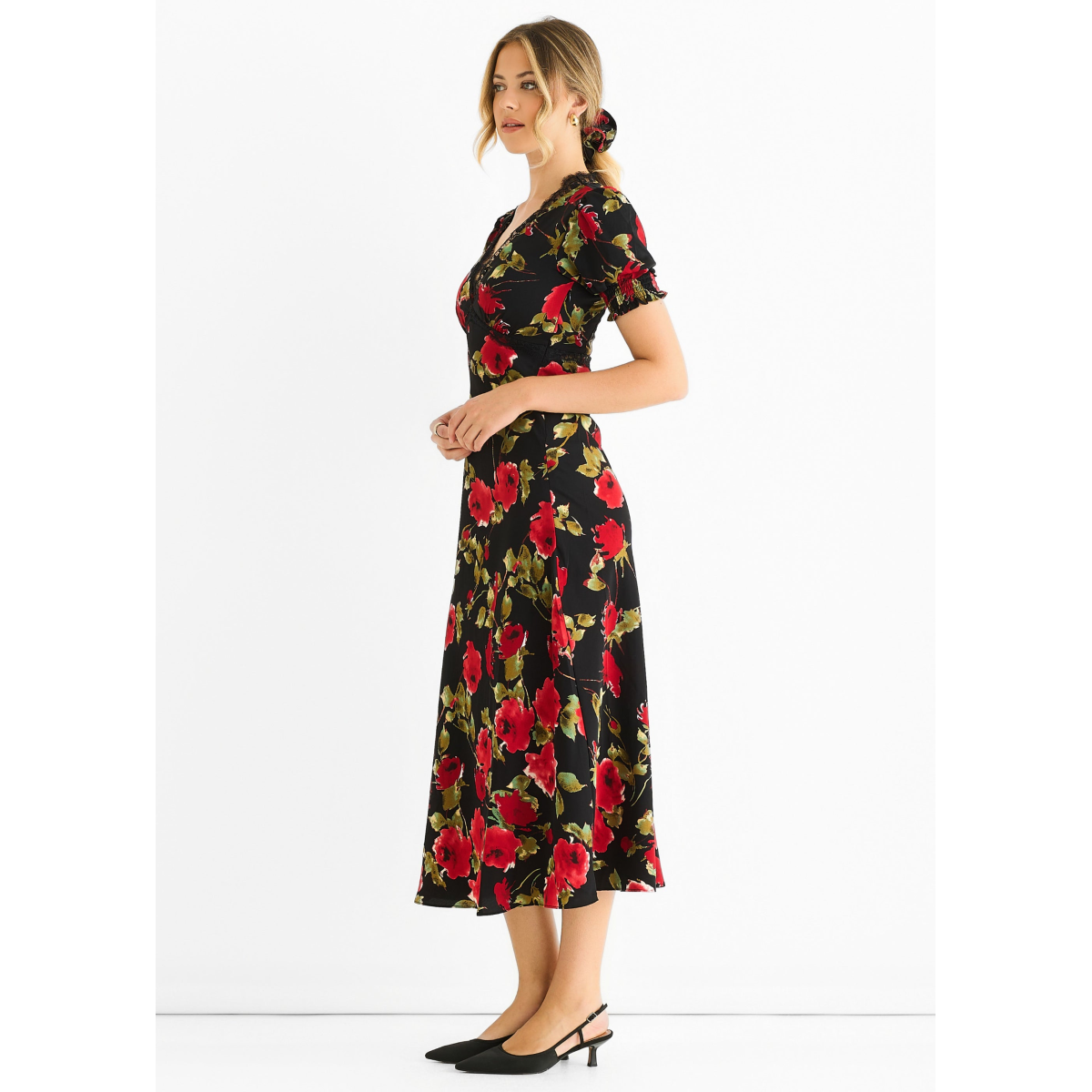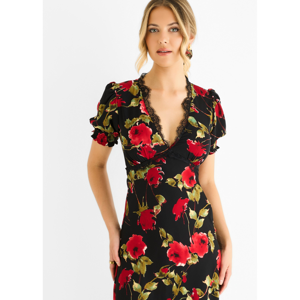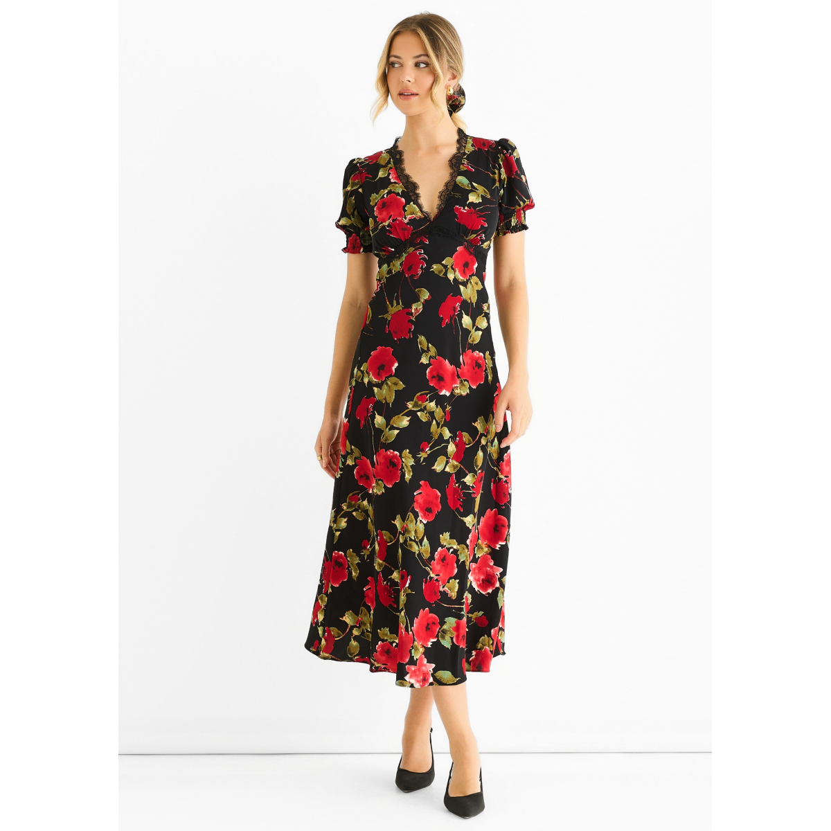This Black Floral Lace Trim Detail Midi Dress combines casual comfort with bold style. Featuring delicate floral lace trims, it adds a touch of elegance while maintaining an easy, relaxed fit.