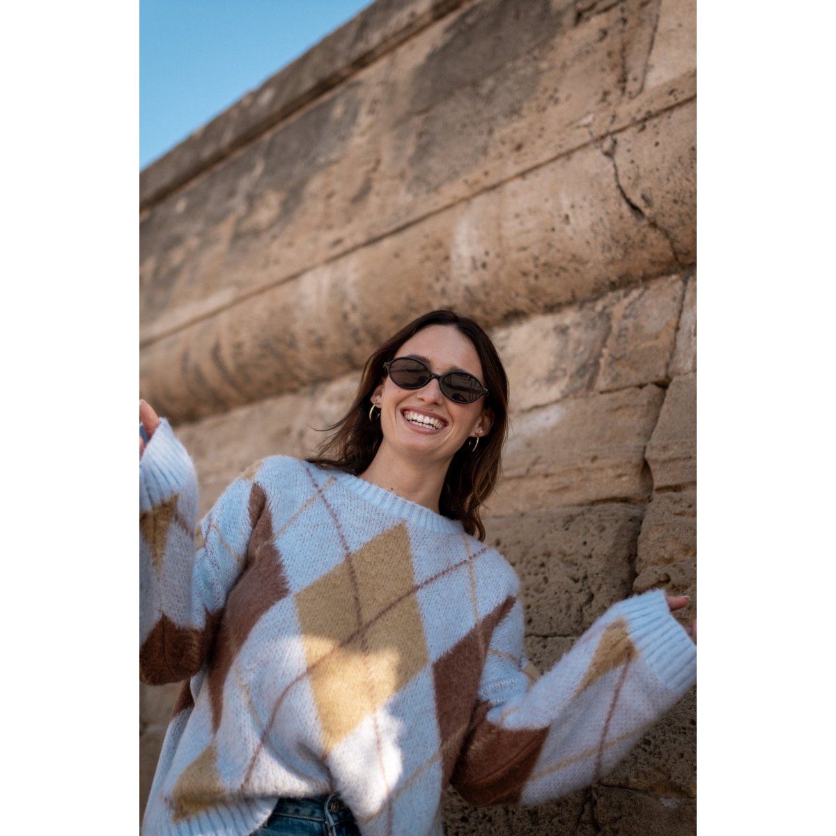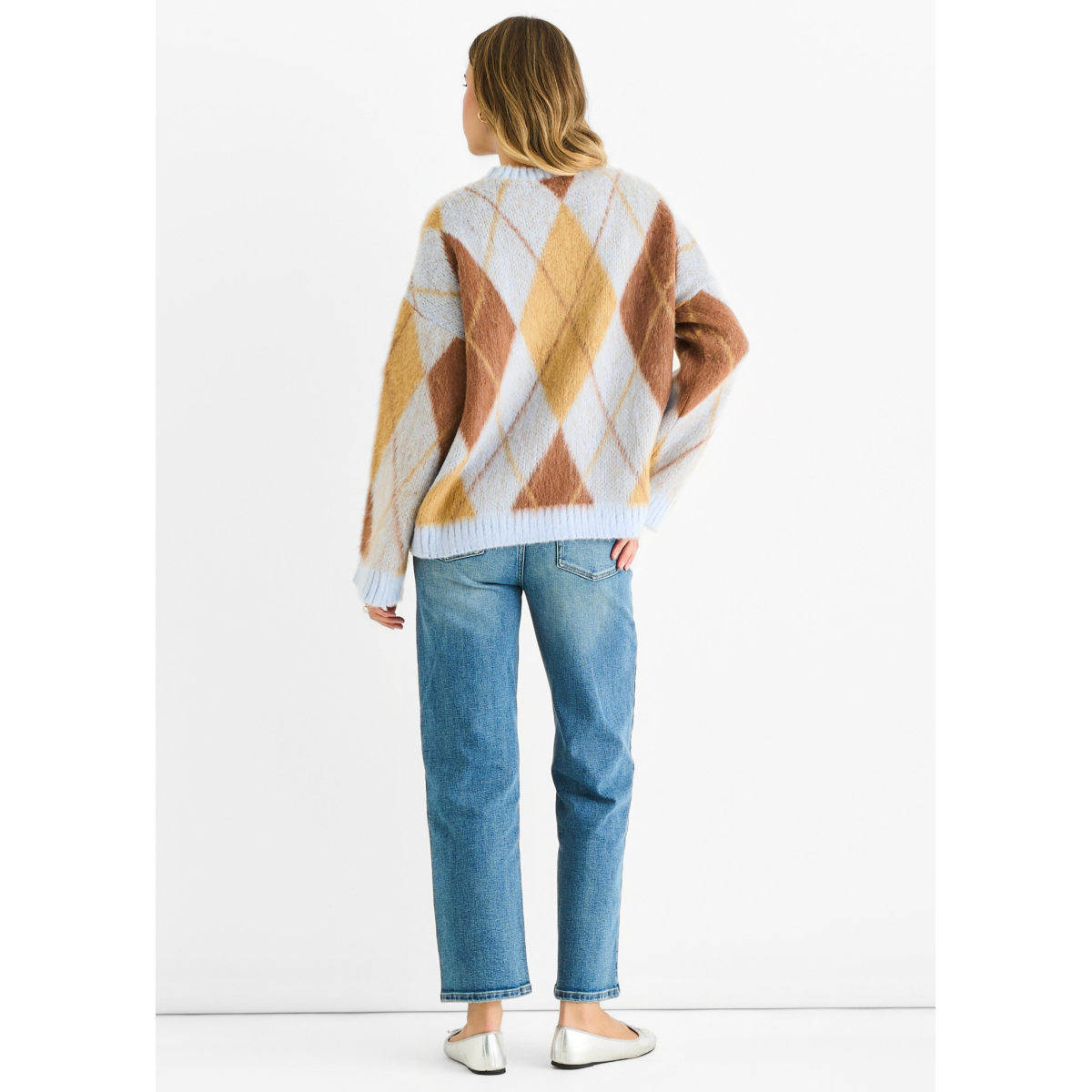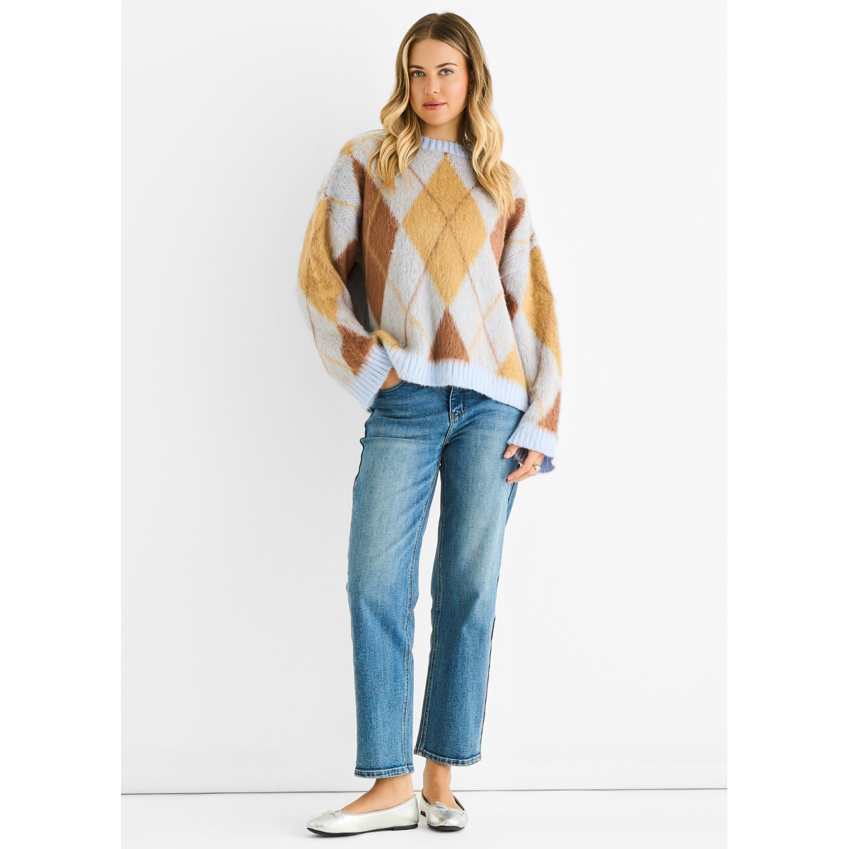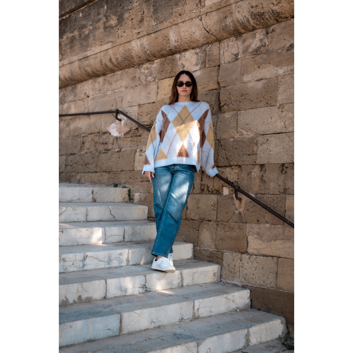 Stay stylish and cozy with this Blue Argyle Knit Round Neck Jumper. Crafted for comfort, its classic argyle pattern adds a bold touch to your casual wardrobe. Perfect for layering or wearing on its own, this jumper combines timeless design with everyday ease.