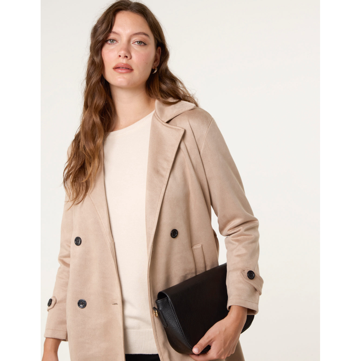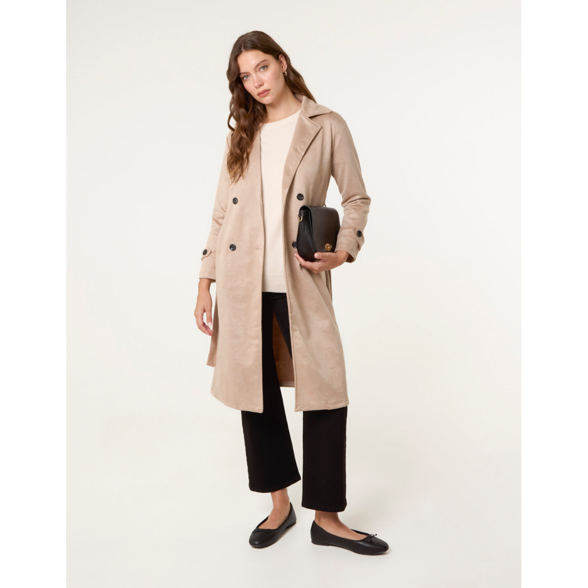 Suede Button Trench Coat