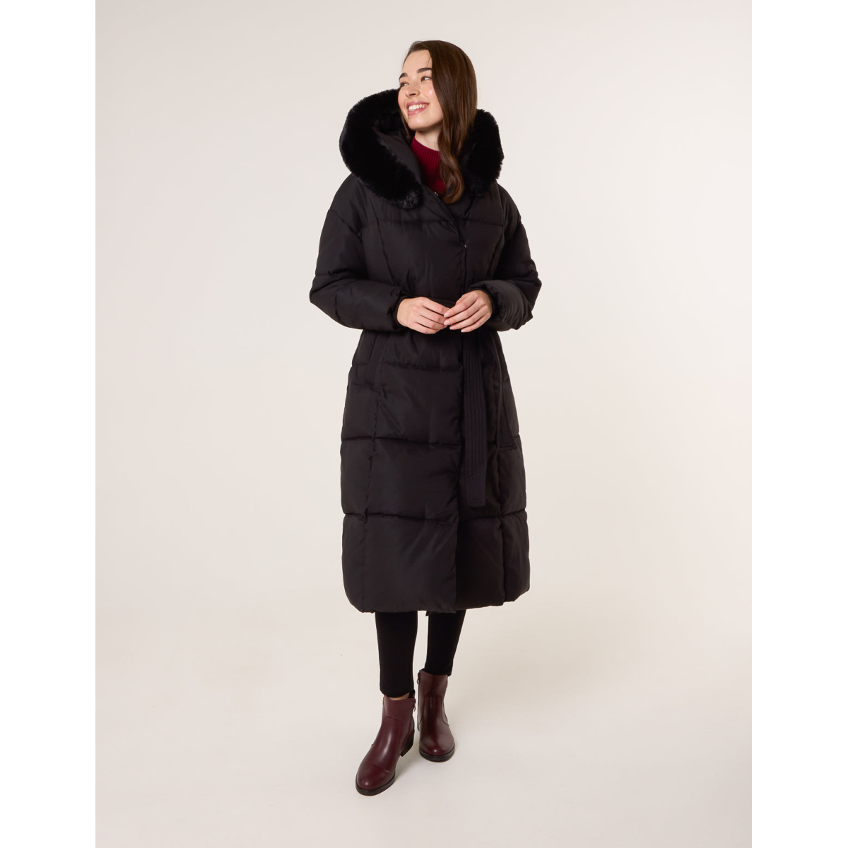 Long Puffer Faux Fur Hooded Coat