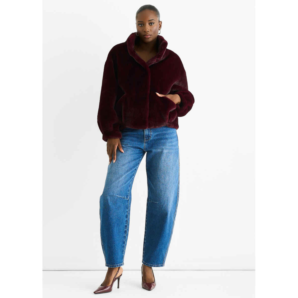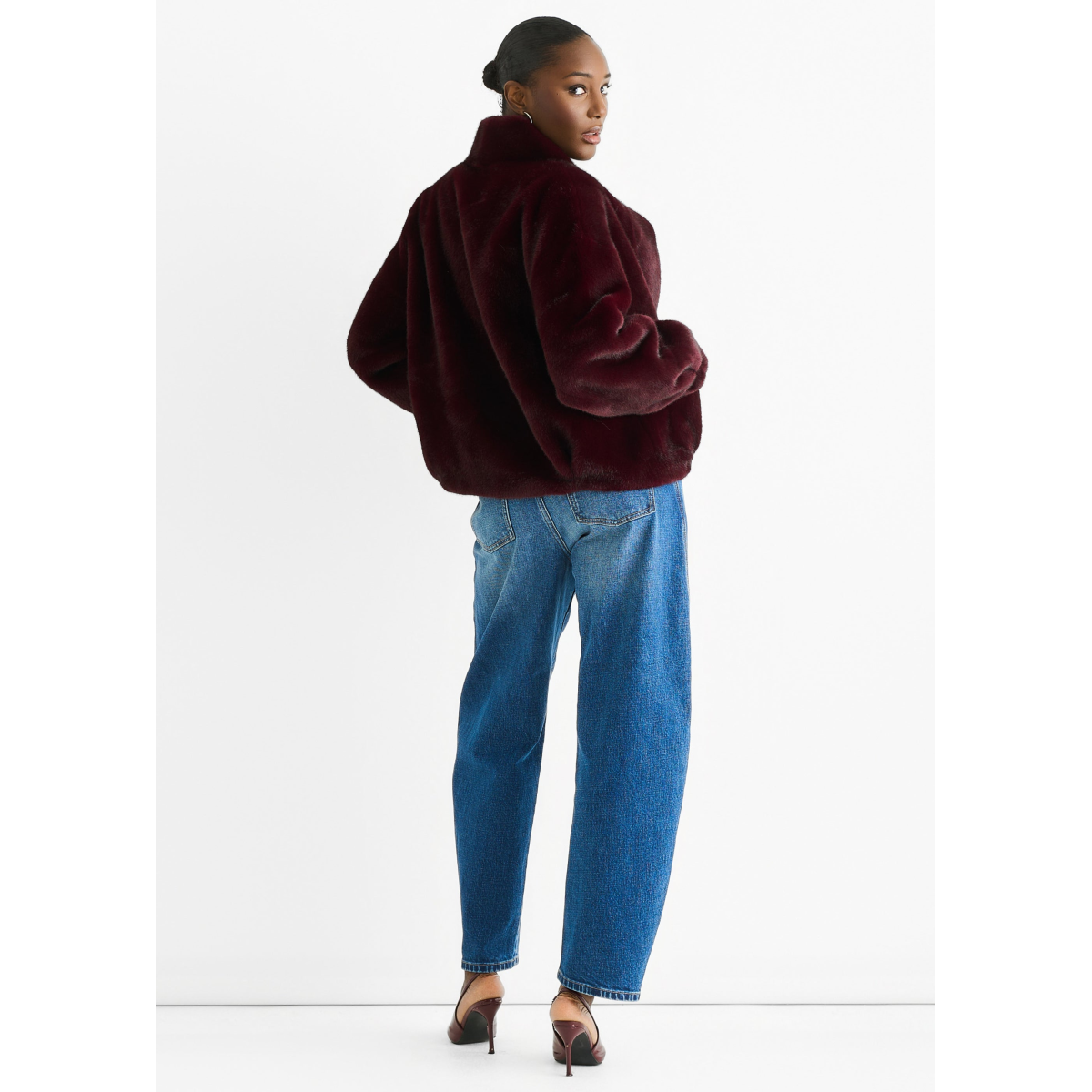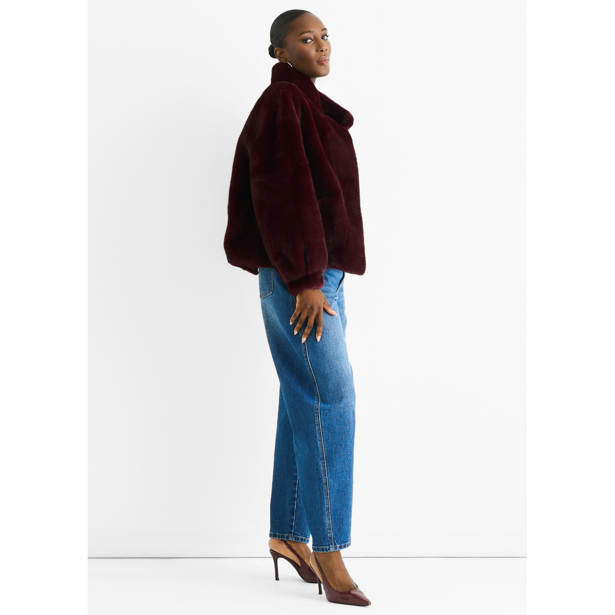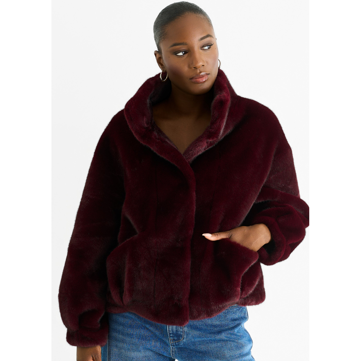 Angora Red Funnel Neck Button Up Faux Fur Jacket
