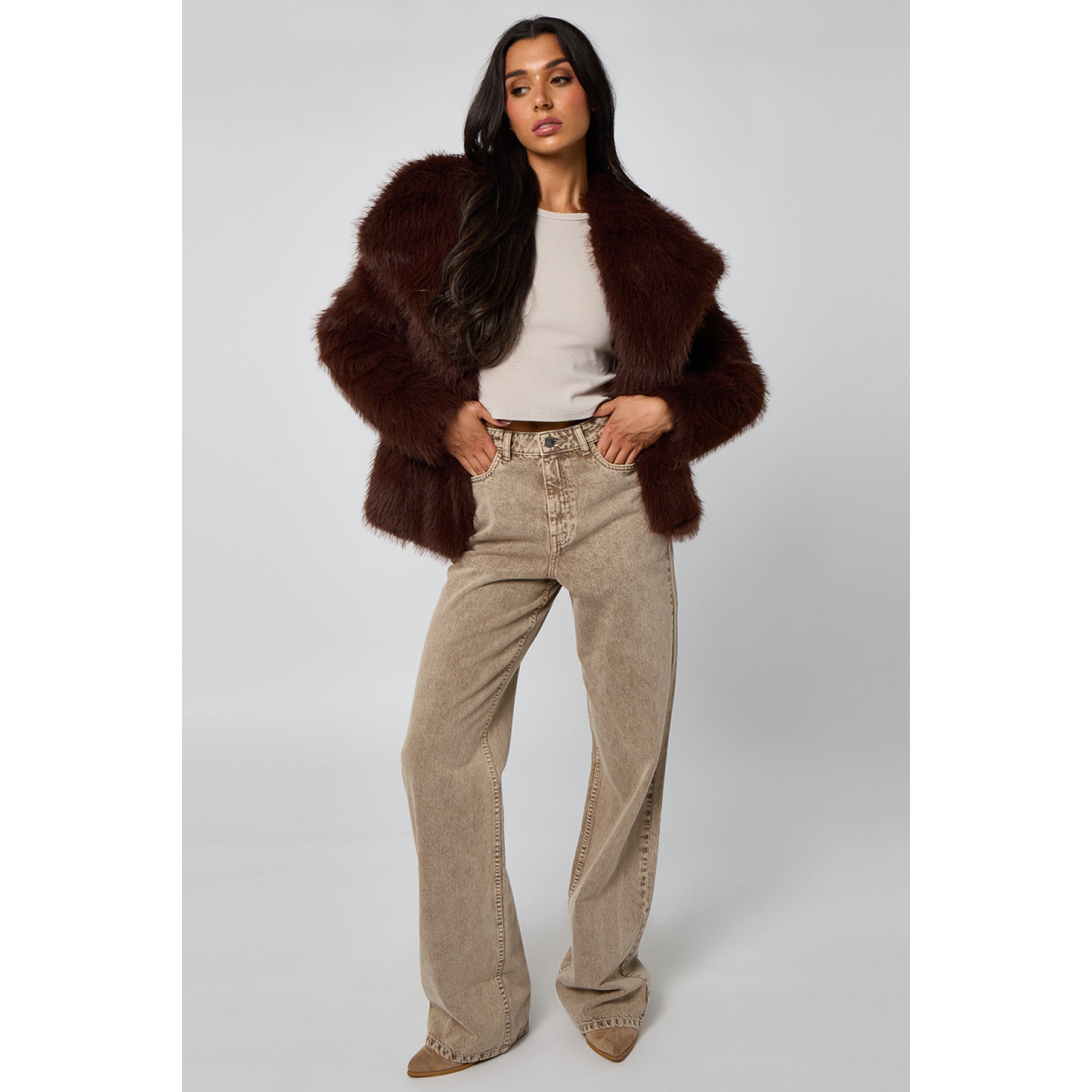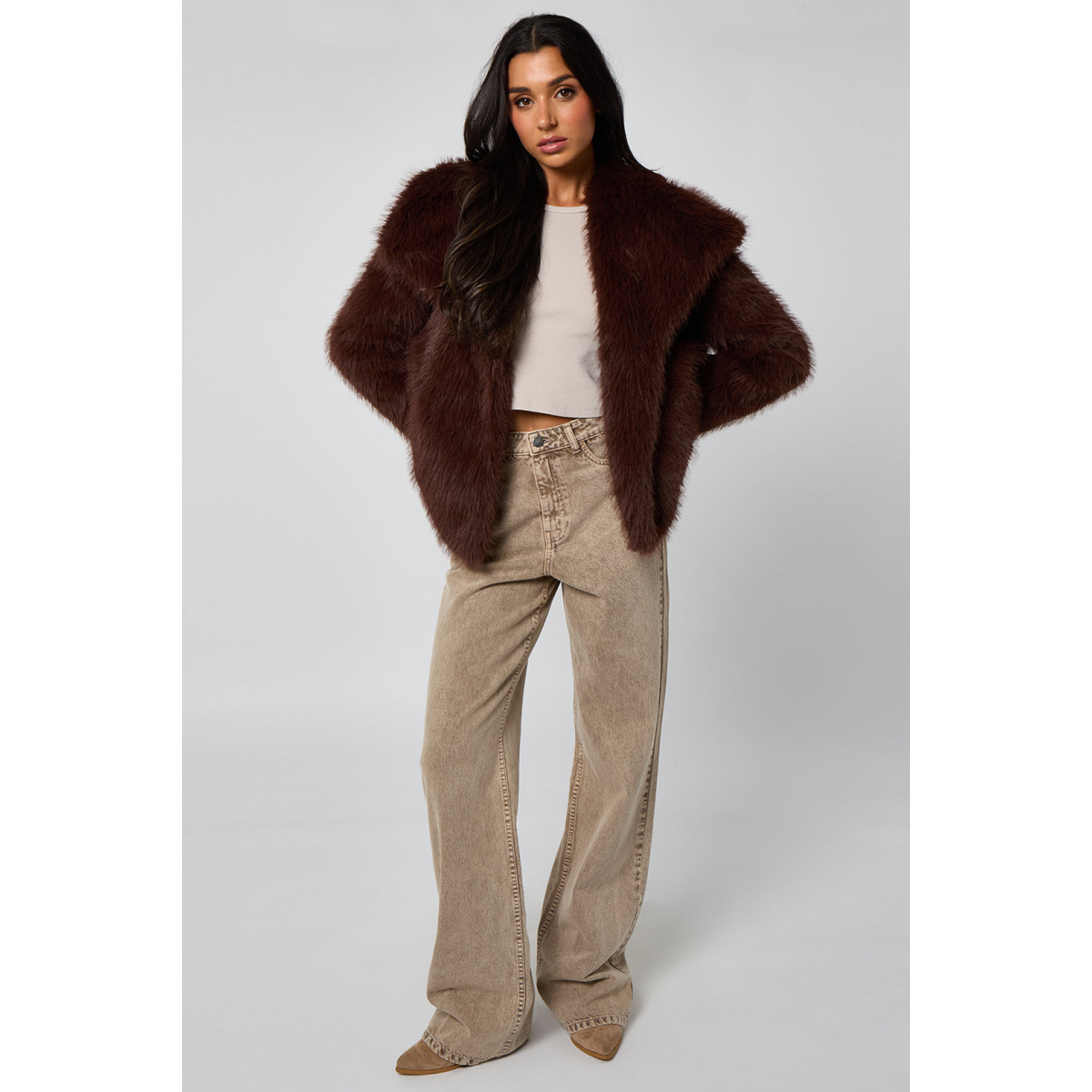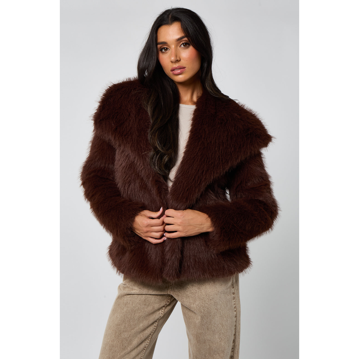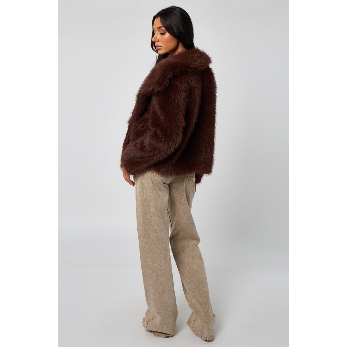 Experience luxurious warmth and style with the Brown Faux Fur Jacket. Crafted from soft, plush faux fur, this jacket offers a cosy feel while making a chic fashion statement. The versatile Brown colour complements a variety of outfits, perfect for elevating your everyday look or adding elegance to evening wear. Designed with a comfortable fit and classic silhouette, it’s the ideal layering piece for cooler seasons.
