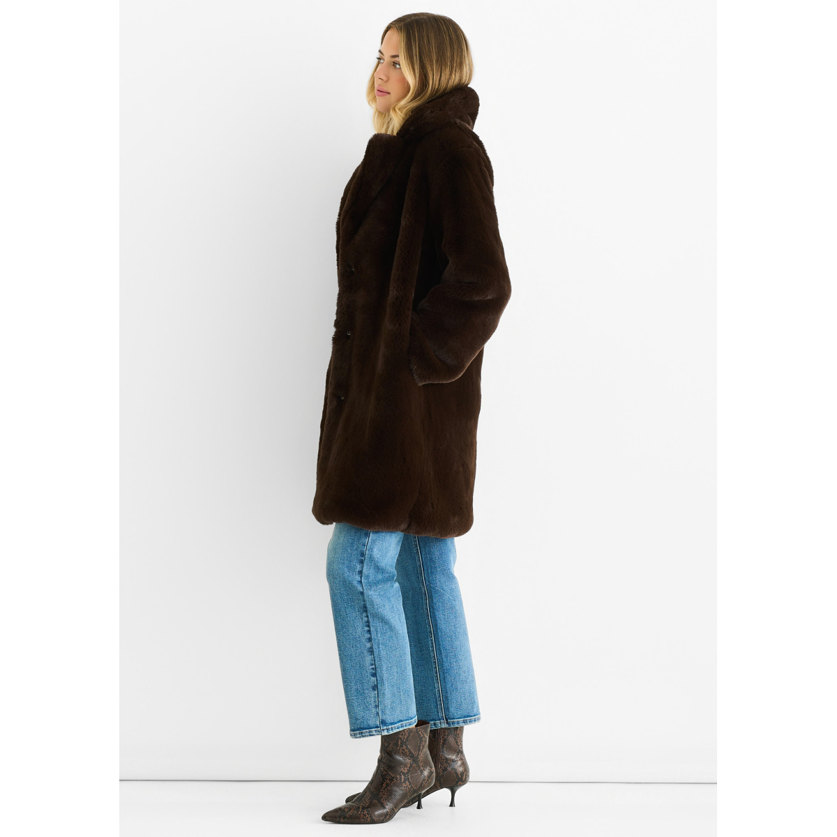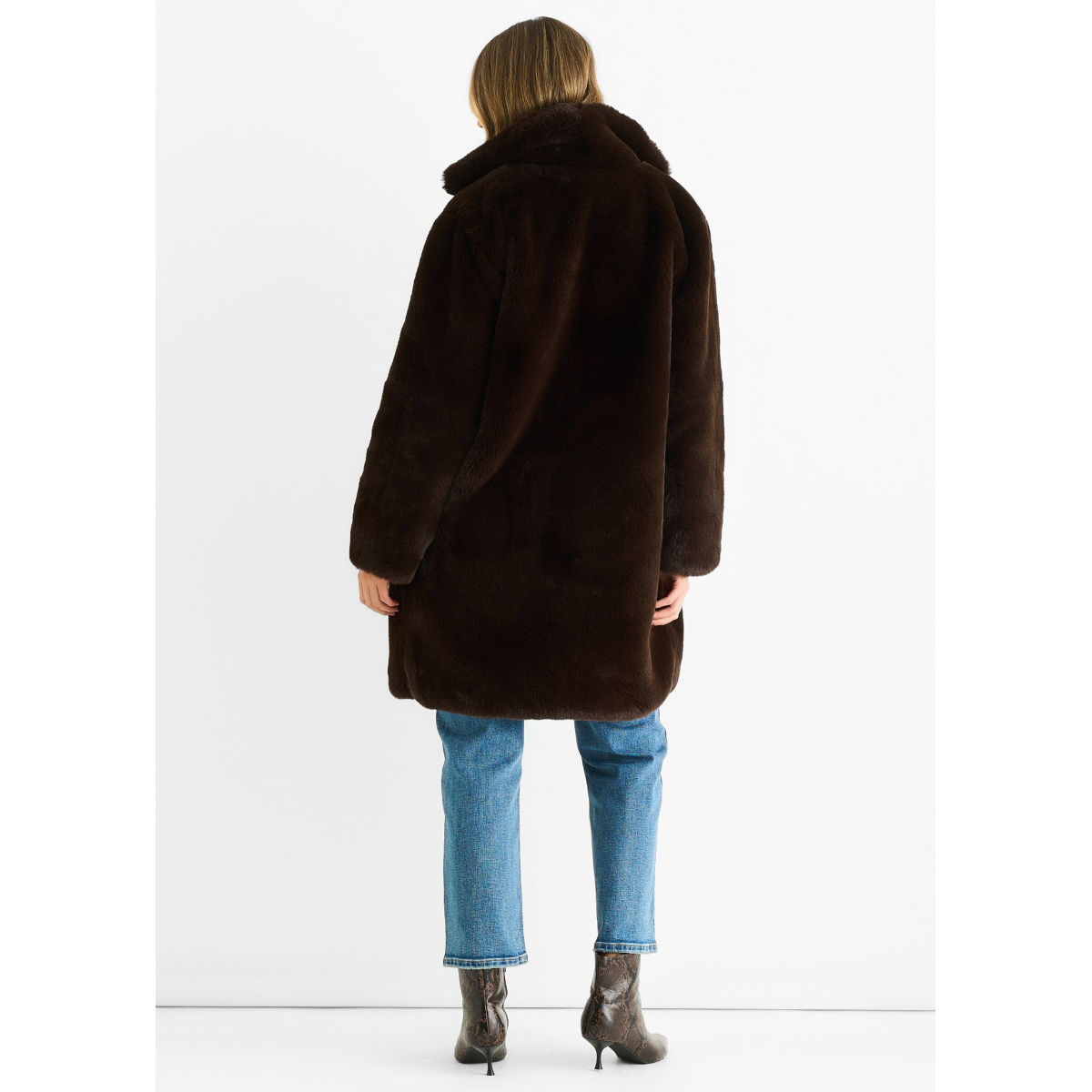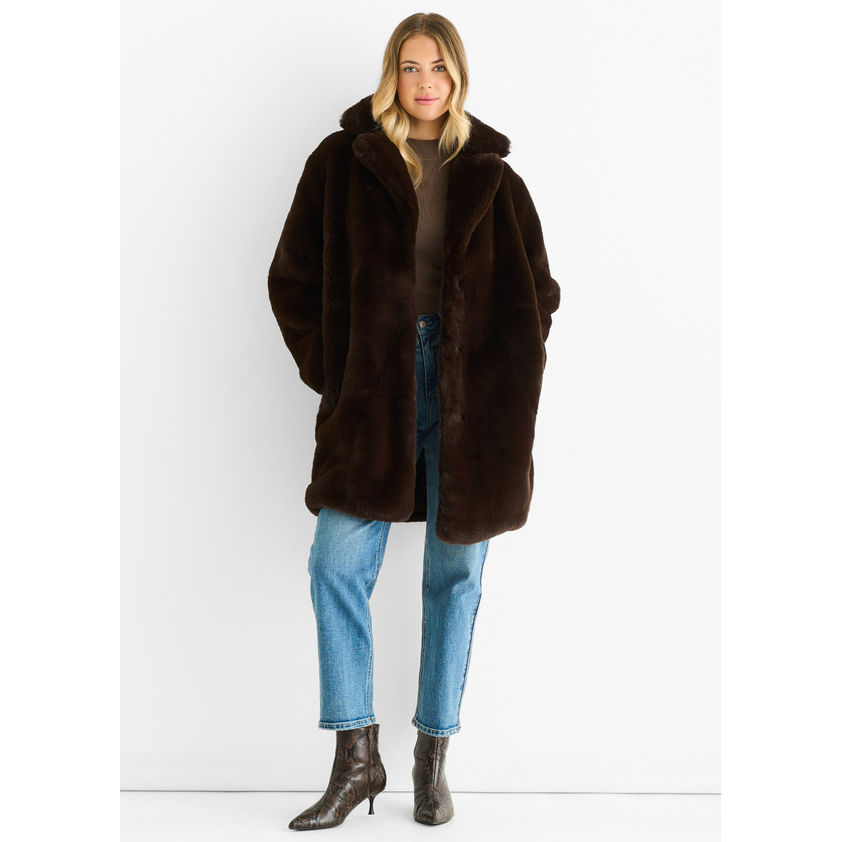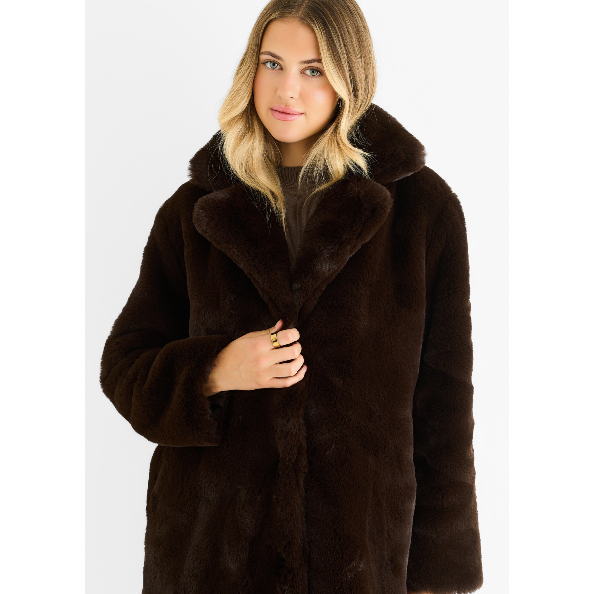 Chocolate Faux Fur Lapel Collar Longline Coat