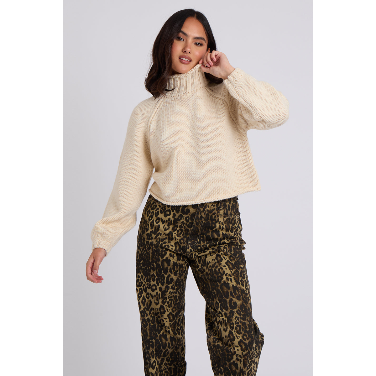 Cream Exposed Seam Roll Neck Jumper