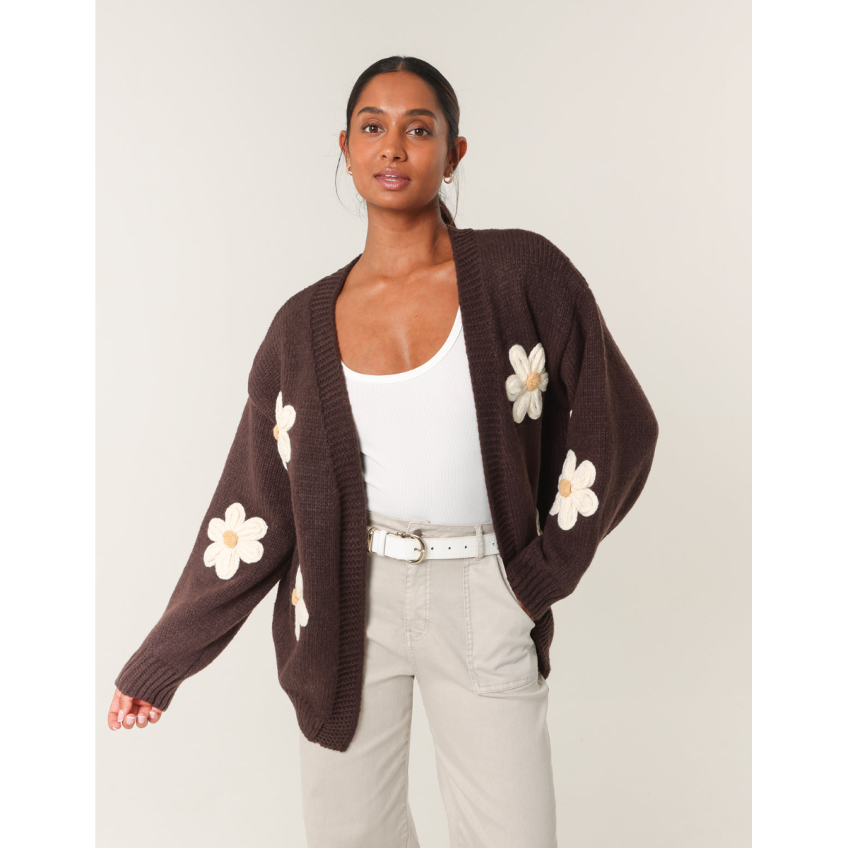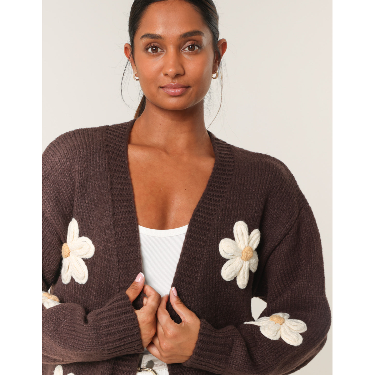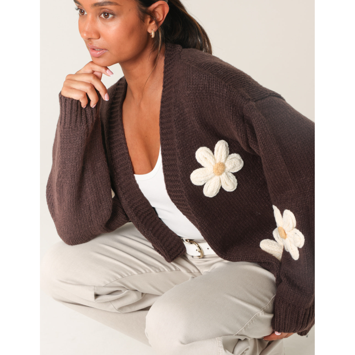 Taking it back to the 70's this season! This oversized, daisy embroidery knitted cardigan provides just that! Team this chunky cardigan with flares and pumps and gain ultimate styling points this AW.
