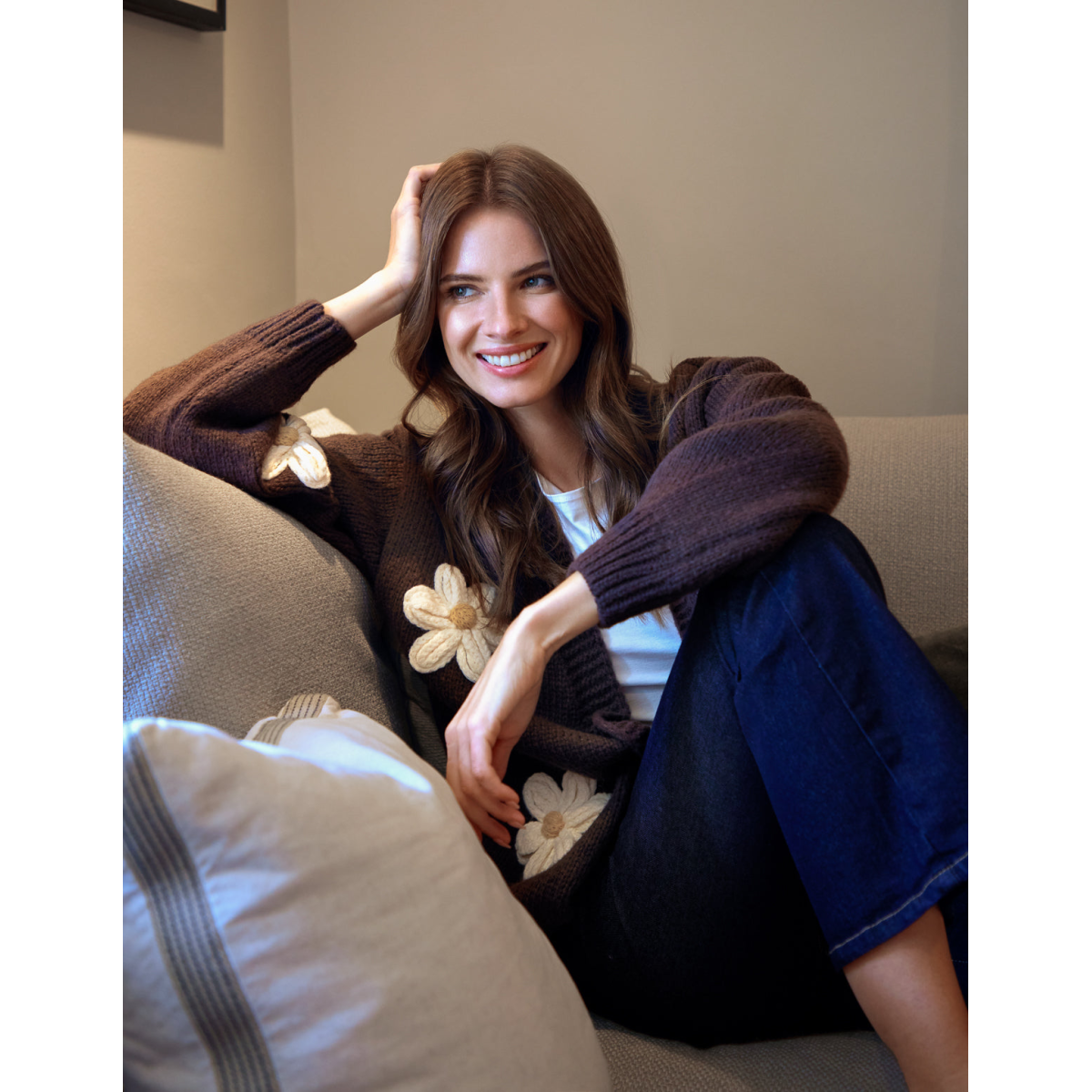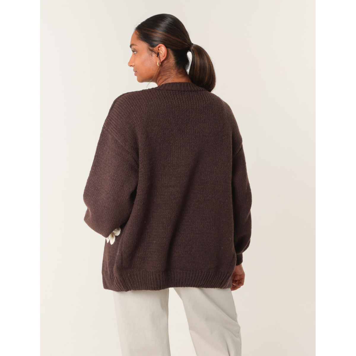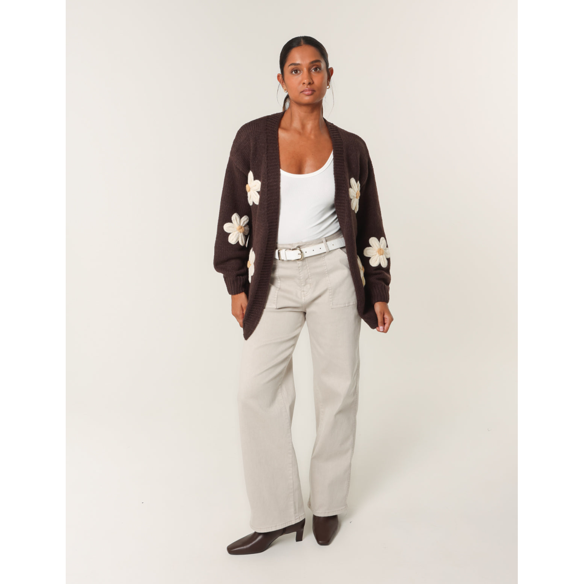 Taking it back to the 70's this season! This oversized, daisy embroidery knitted cardigan provides just that! Team this chunky cardigan with flares and pumps and gain ultimate styling points this AW.