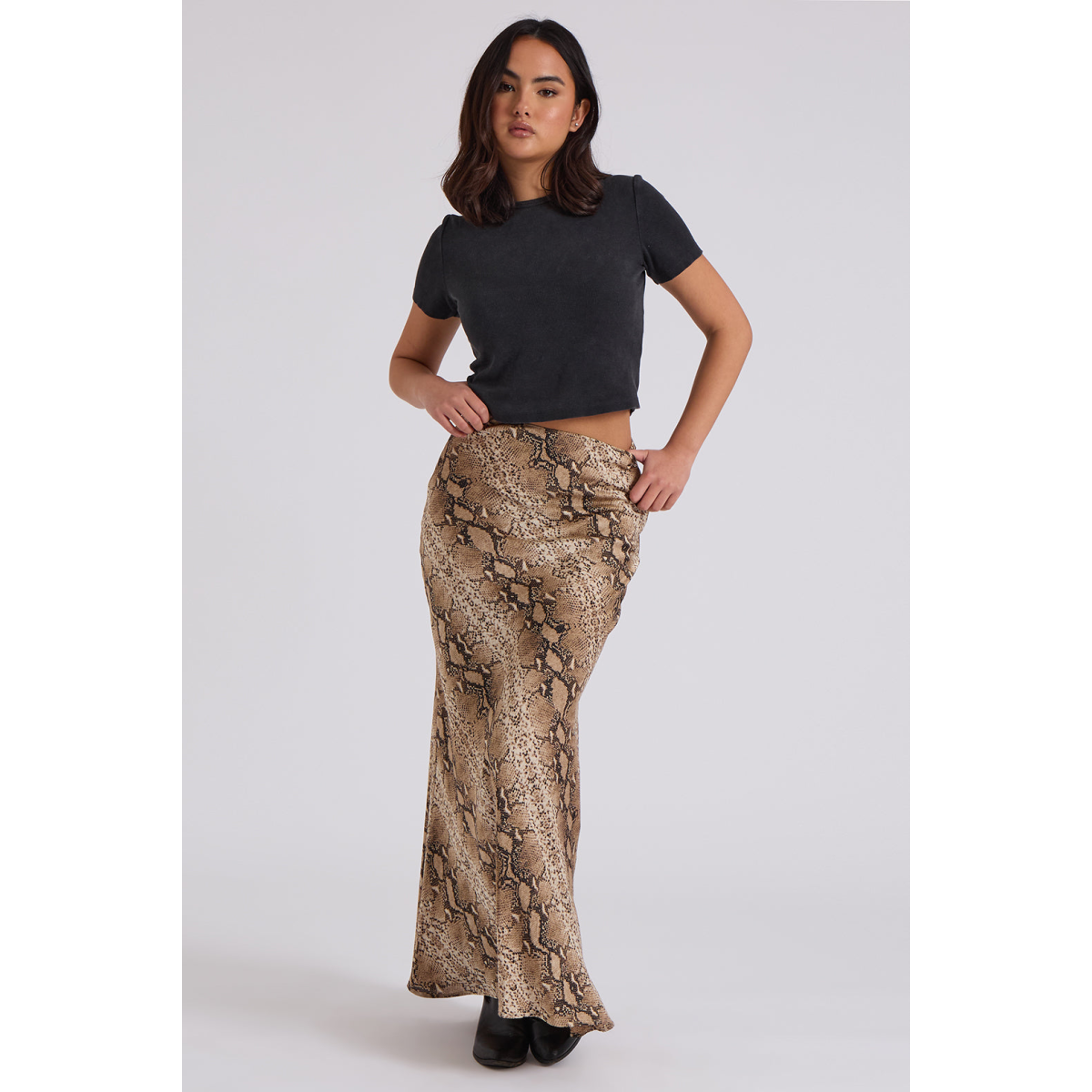 Introducing our Snake Print Bias Cut Maxi Skirt, designed to make a statement. With its eye-catching snake pattern and flattering bias cut, this skirt drapes beautifully for a smooth, flowing silhouette. Perfect for day or night, it effortlessly combines style and comfort for a bold, fashion-forward look.