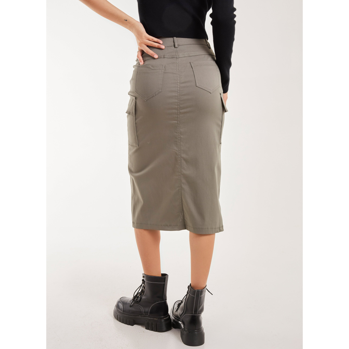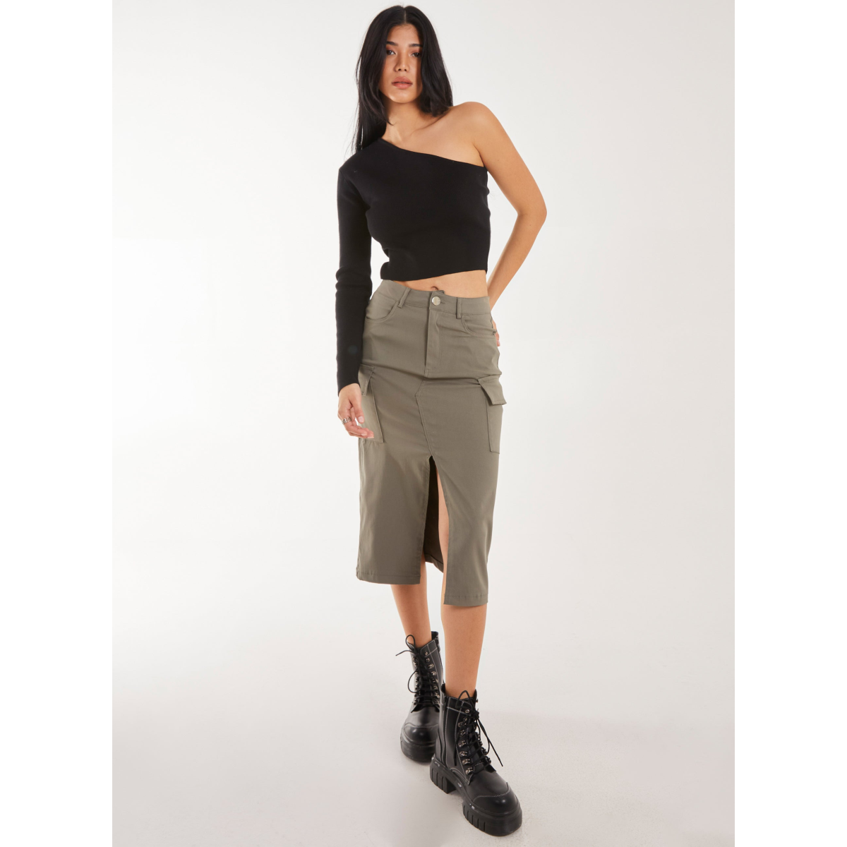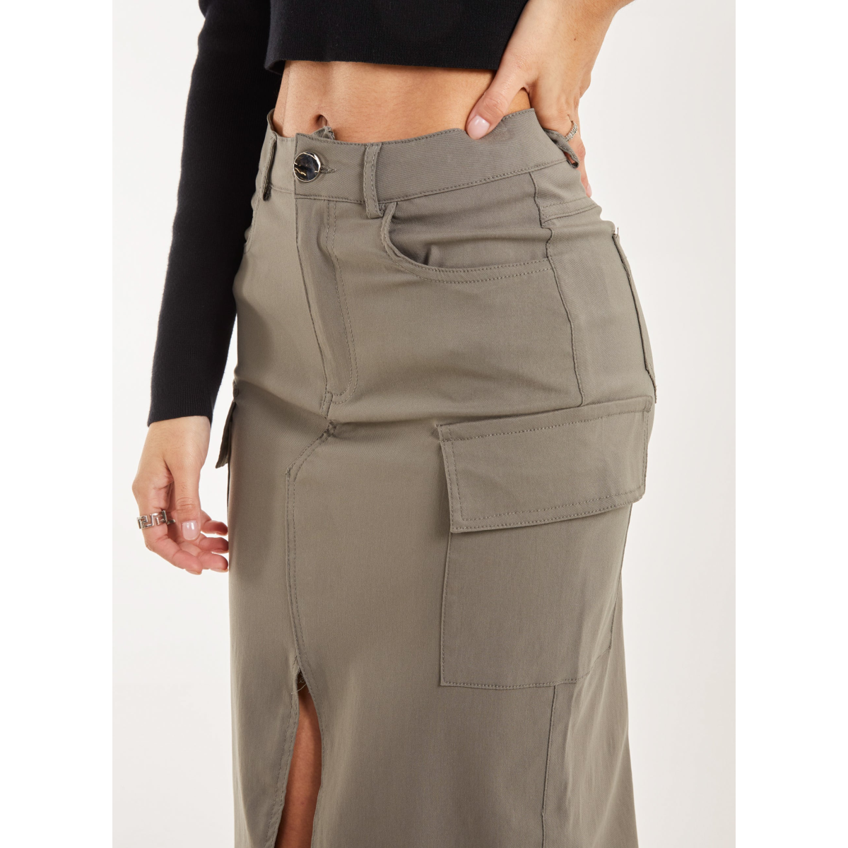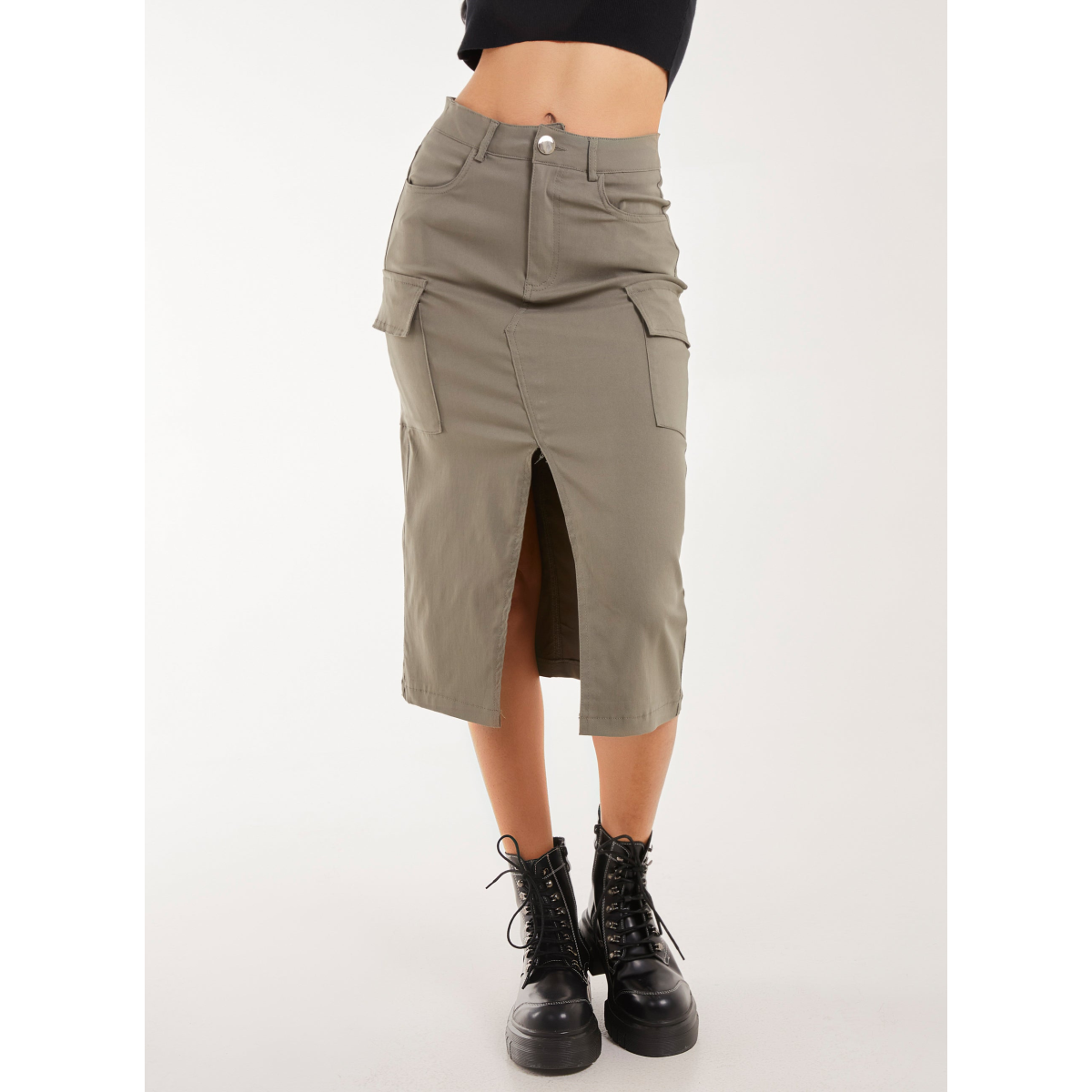 Utility Cargo Midi Slit Skirt