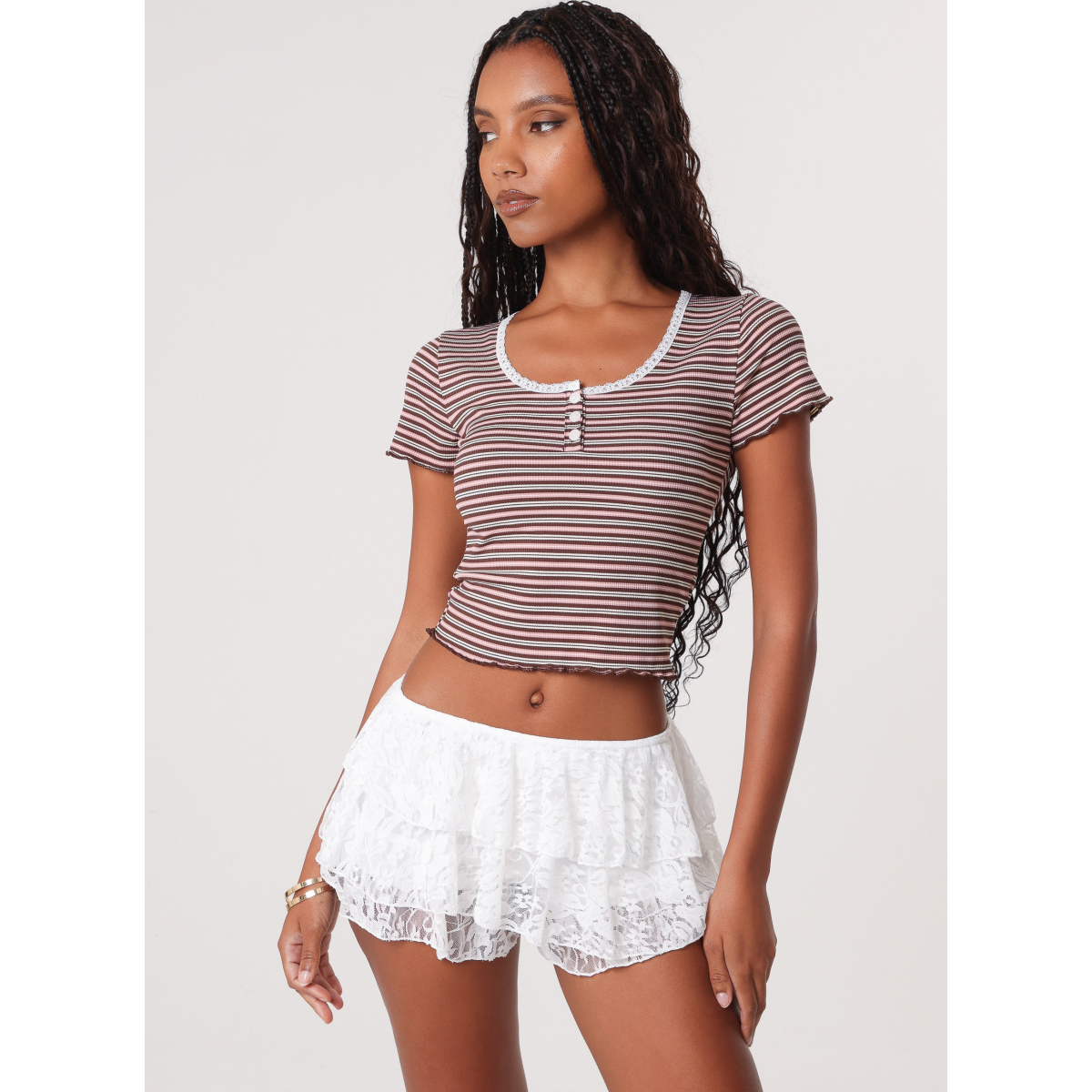 Your new everyday top just landed. Enjoy every outfit by teaming it with this Cap Sleeve Lace Trim Top.