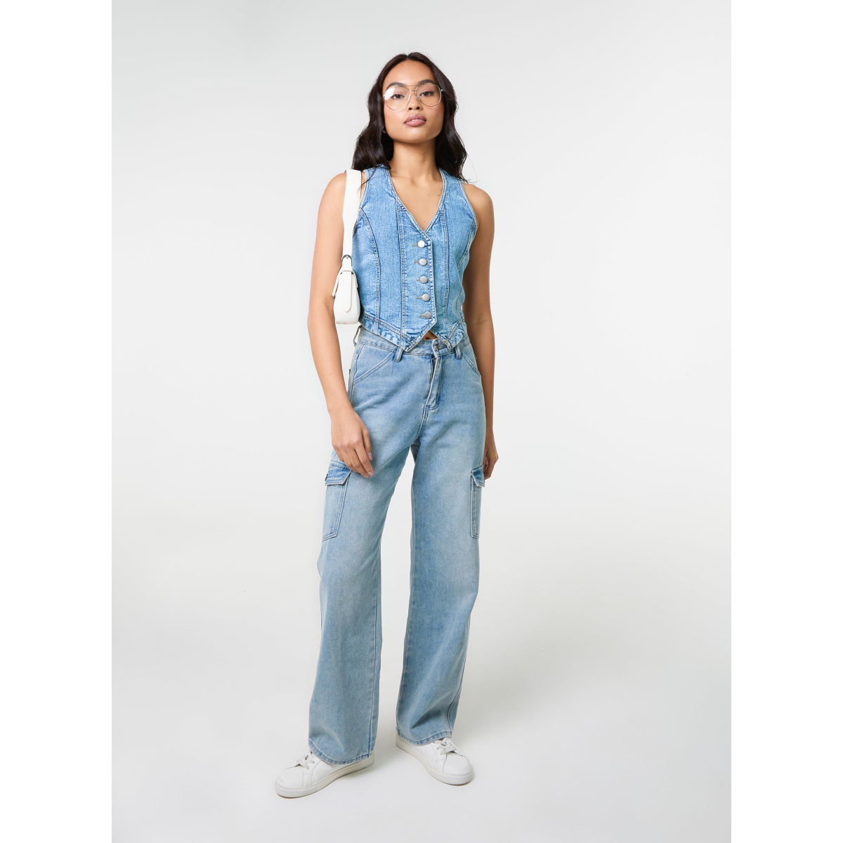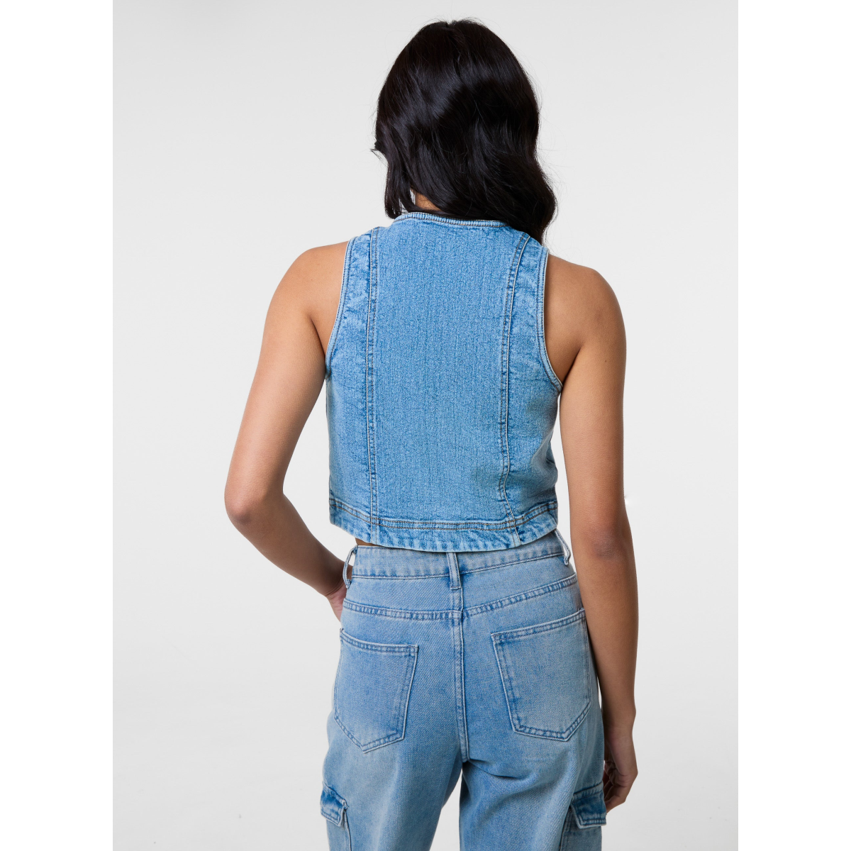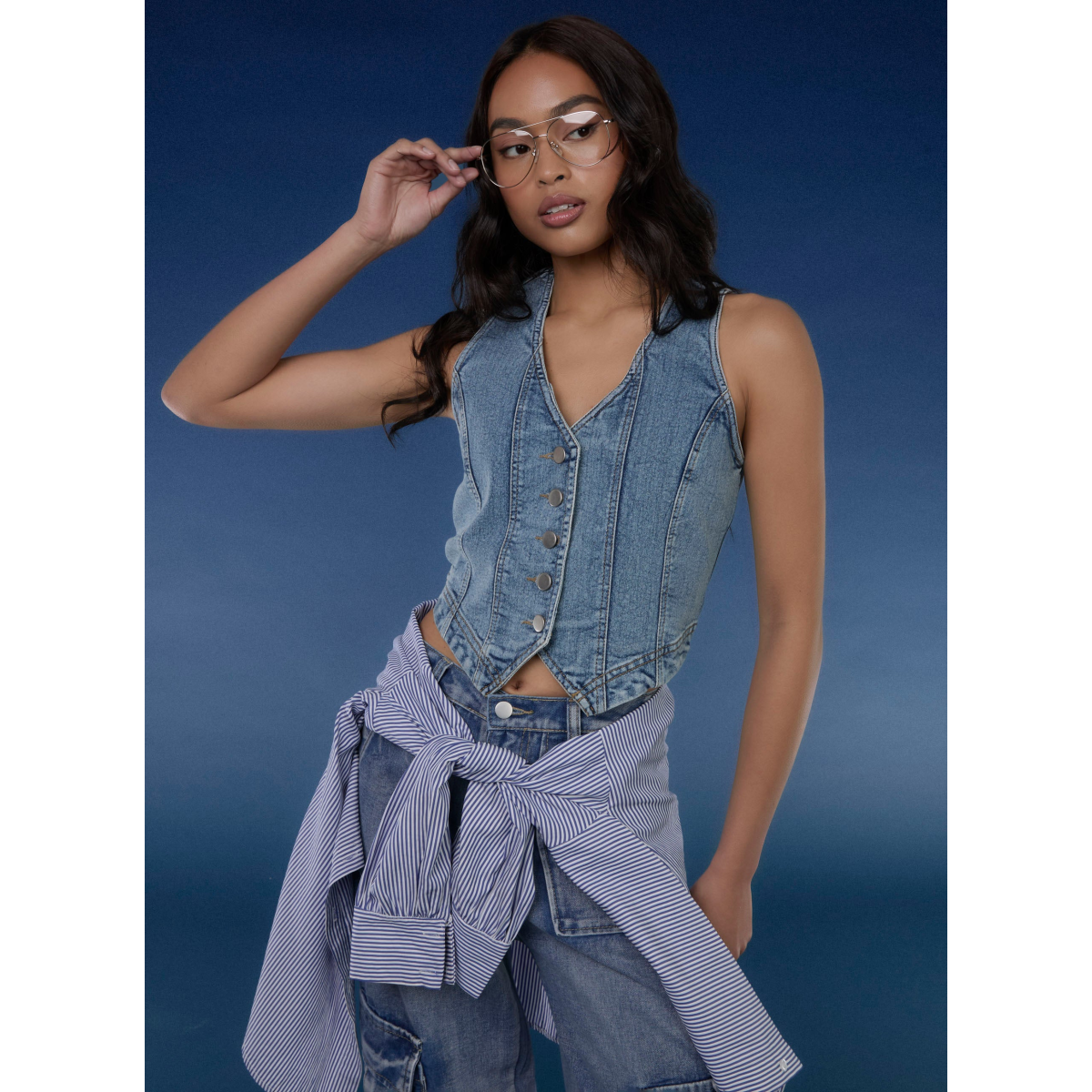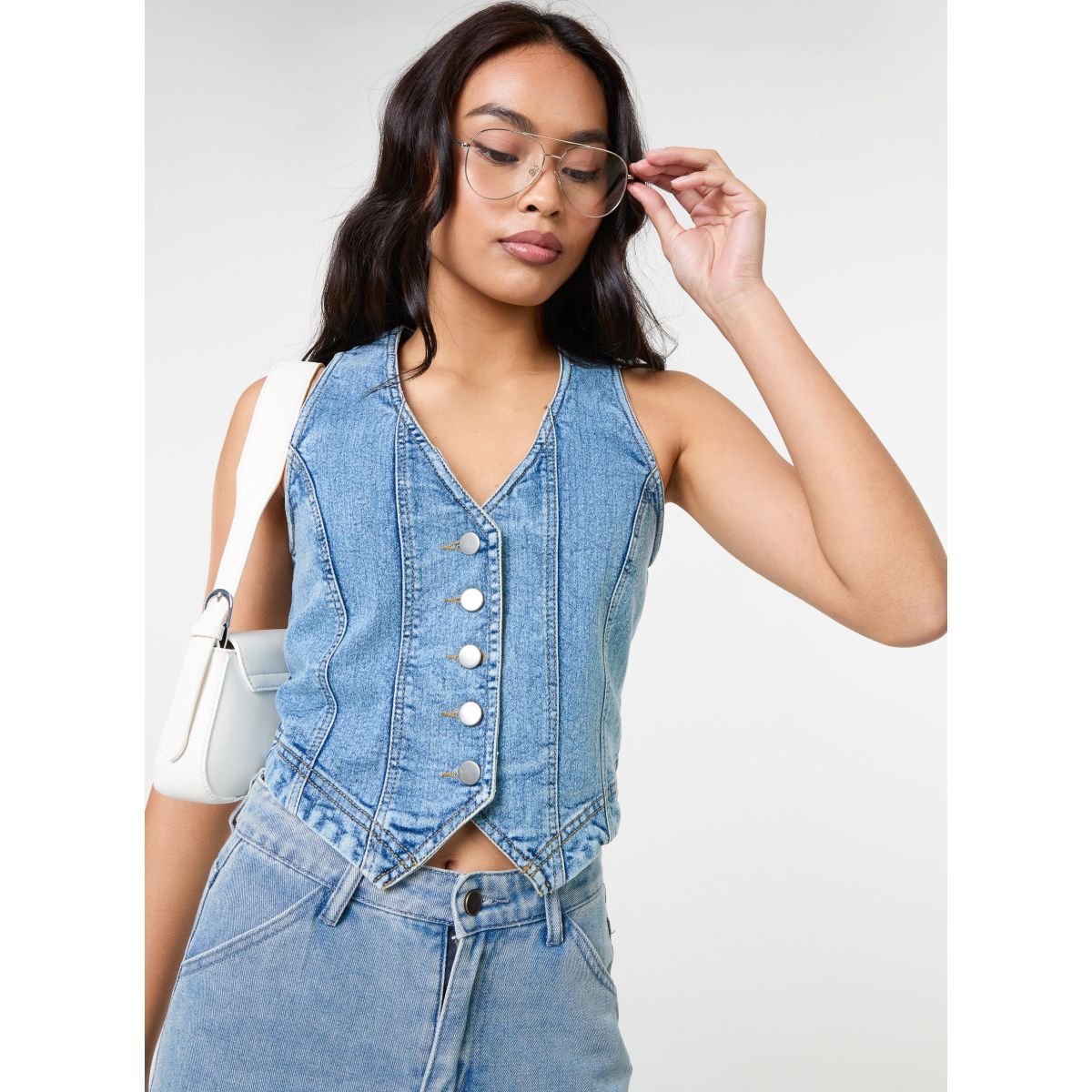 The waistcoat trend is still here. Dress in style with this Denim Fitted Waistcoat and get ready for summer, wear it on its own or layer it with a cute tee.