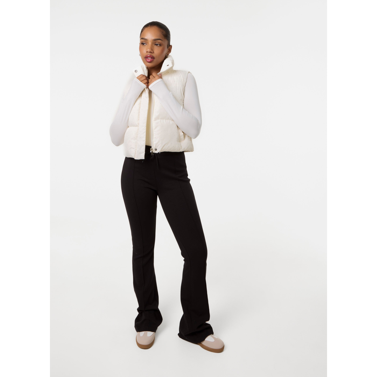 Get cosy and cool in our Diamante Puffer Gilet. This winter warmer is sure to keep you feeling stylish and comfy this season.