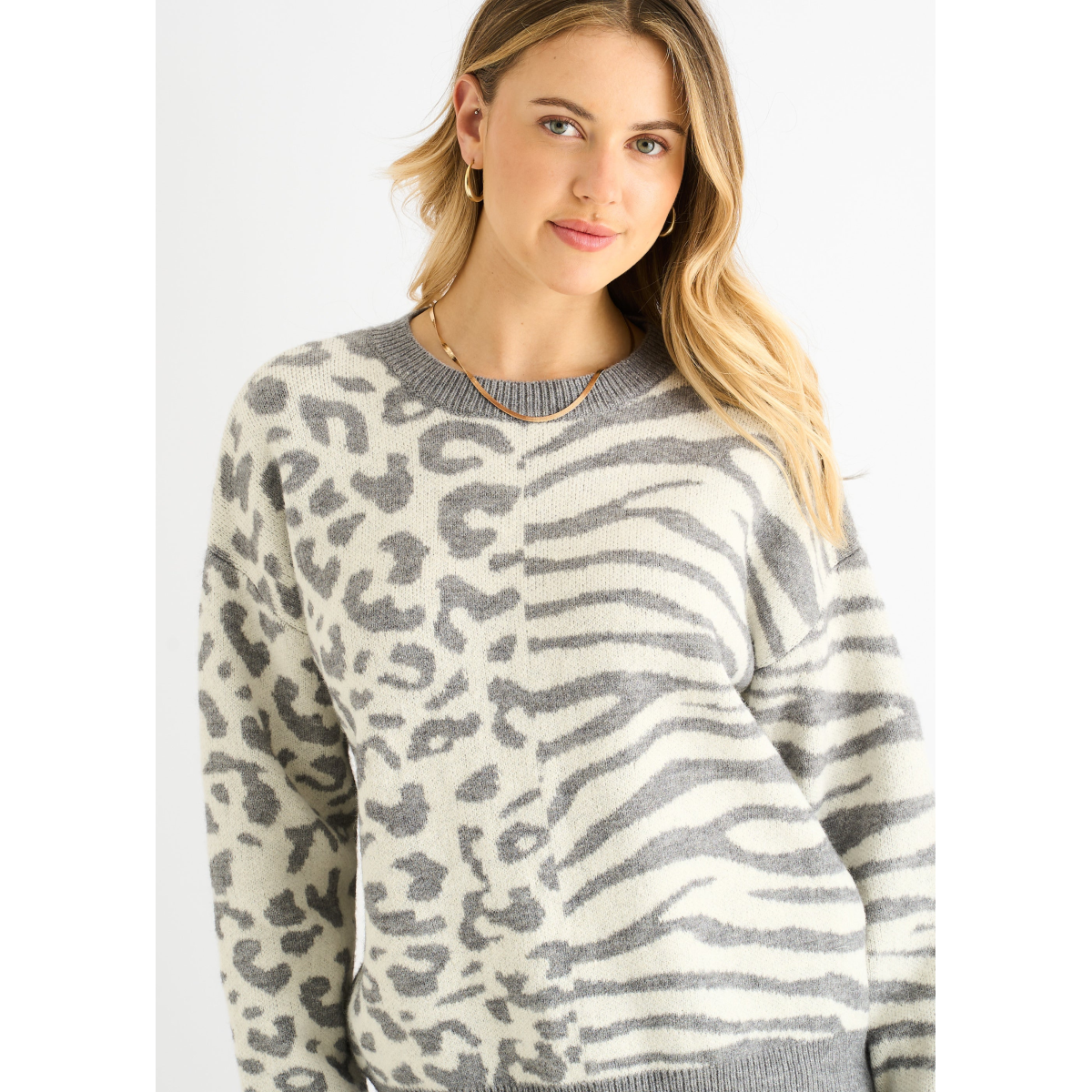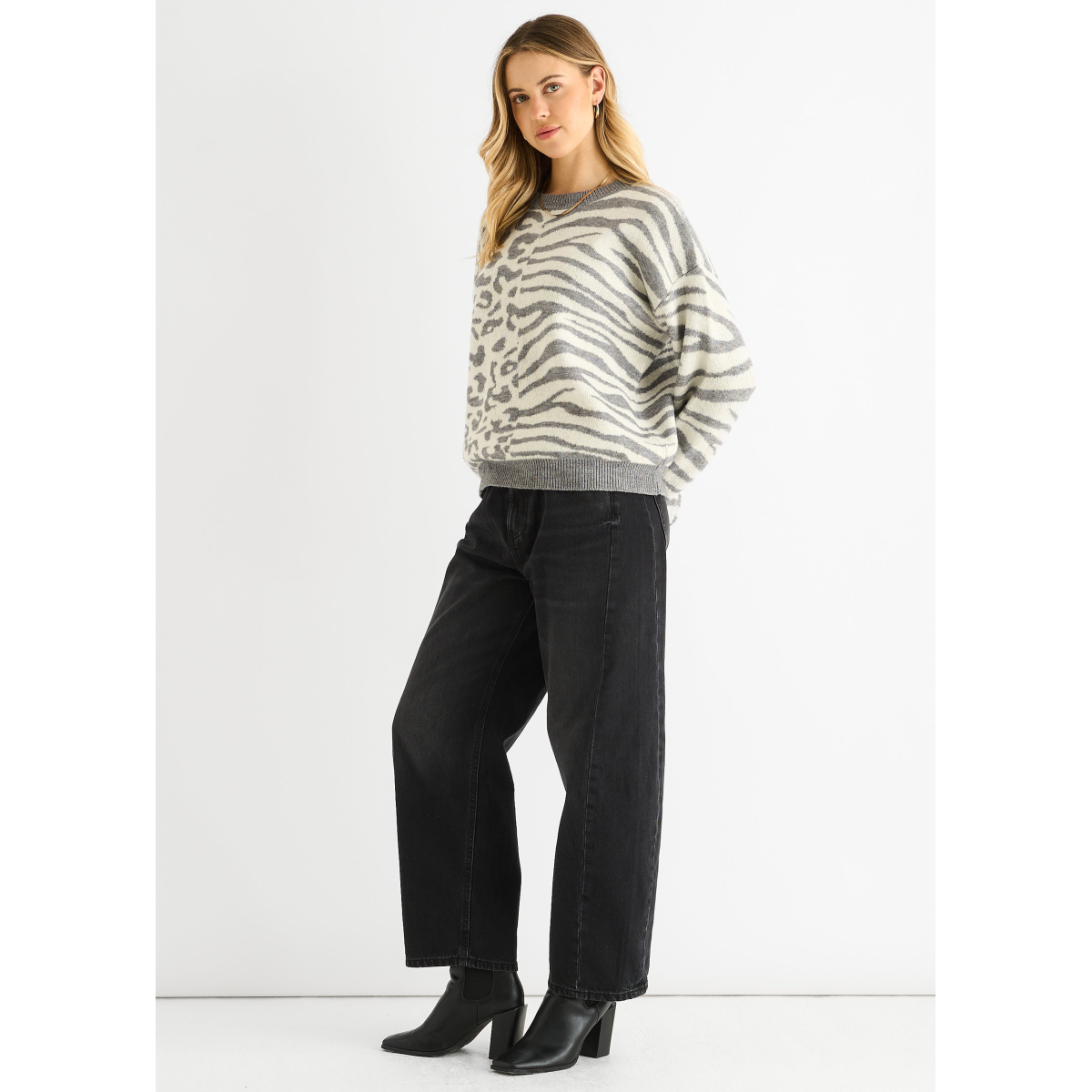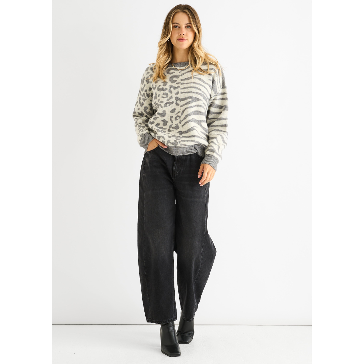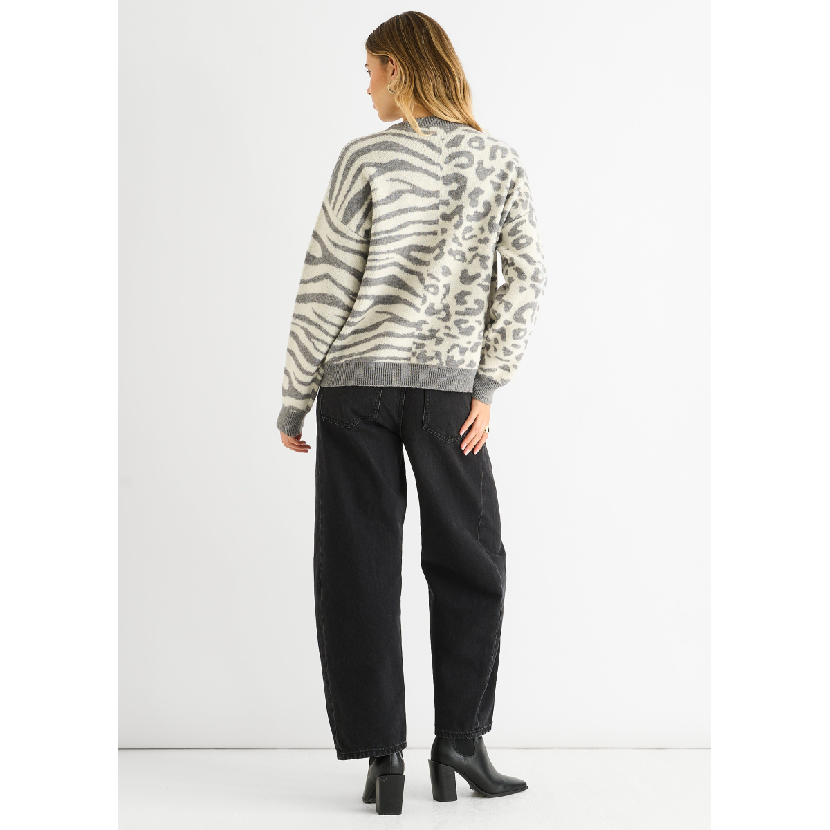 Grey Contrast Zebra Animal Knit Jumper