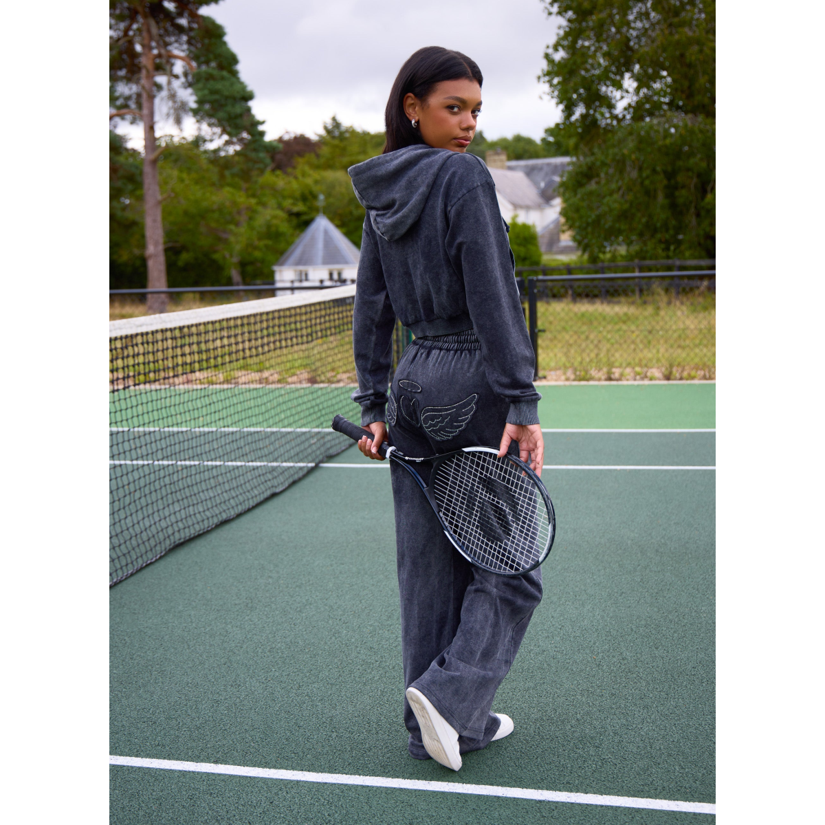 We're embracing all those Y2K vibes with this comfy set. Pair our Halo Diamante Wide Leg Joggers with its matching Halo Diamante Heart Zip Up Hoodie.