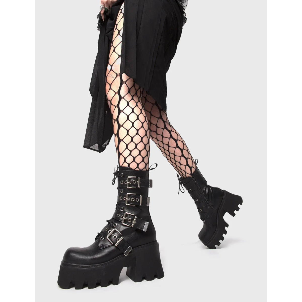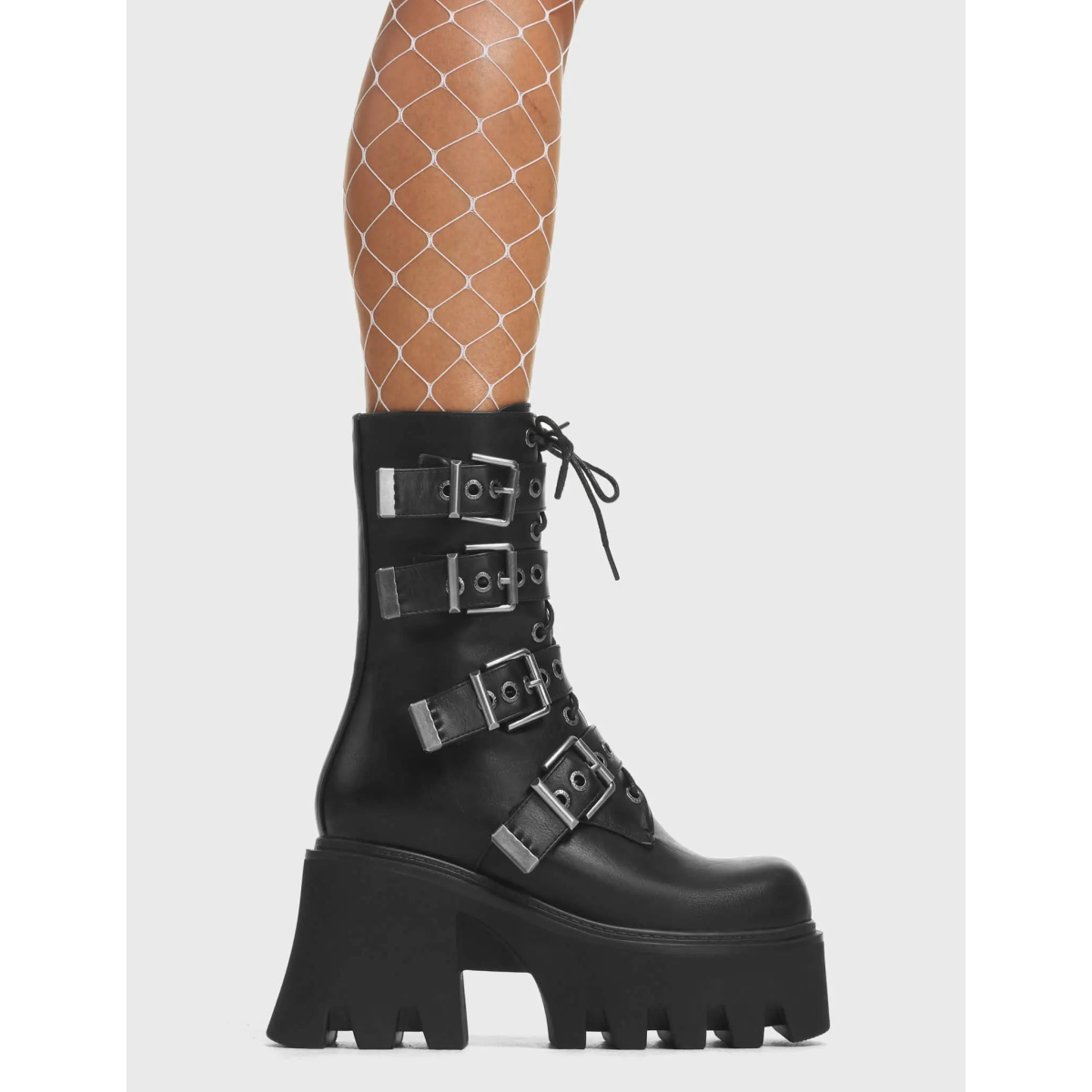 - Black PU upper with edgy platform design