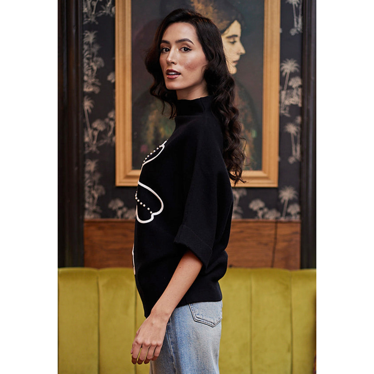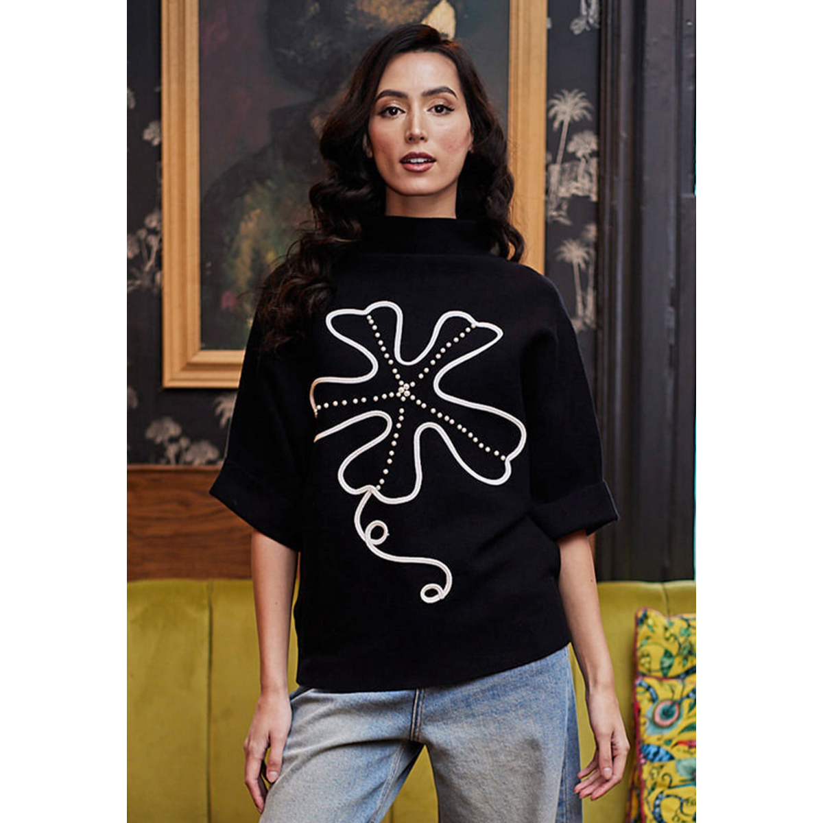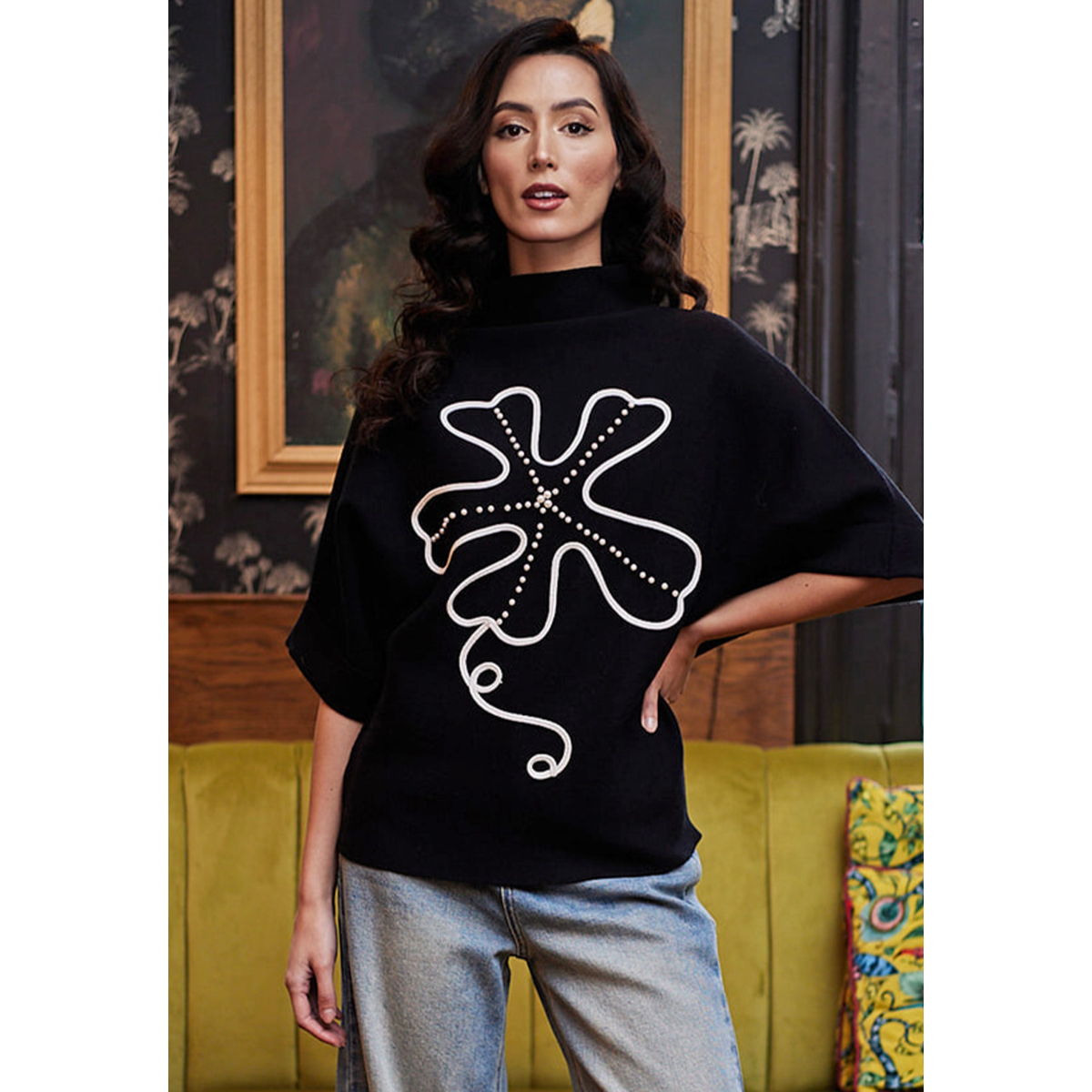 Add a touch of elegance with our chic Turtle Neck Black Jumper featuring a delicate white flower design. Perfect for layering or wearing solo, this cozy piece offers warmth and style. The soft fabric drapes beautifully for a flattering fit, making it ideal for both lounging at home and casual outings. Make it yours today!