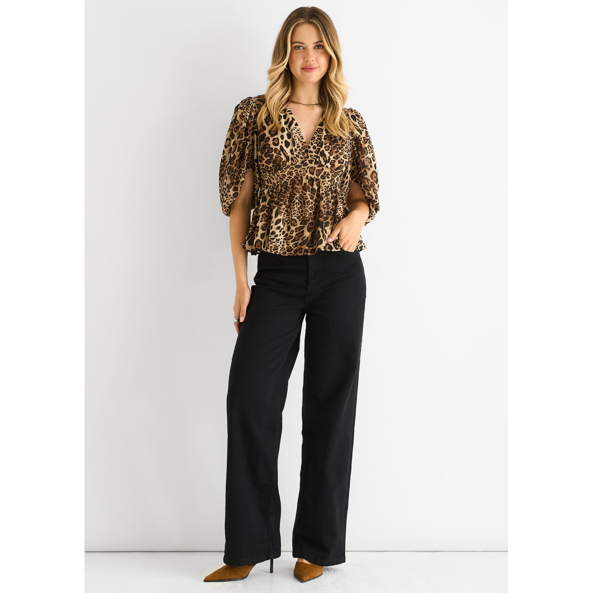 Slay your day in our Brown Animal Print V Neck Peplum Blouse. The striking pattern brings instant attitude while the peplum design creates a figure-flattering shape that works for every body.