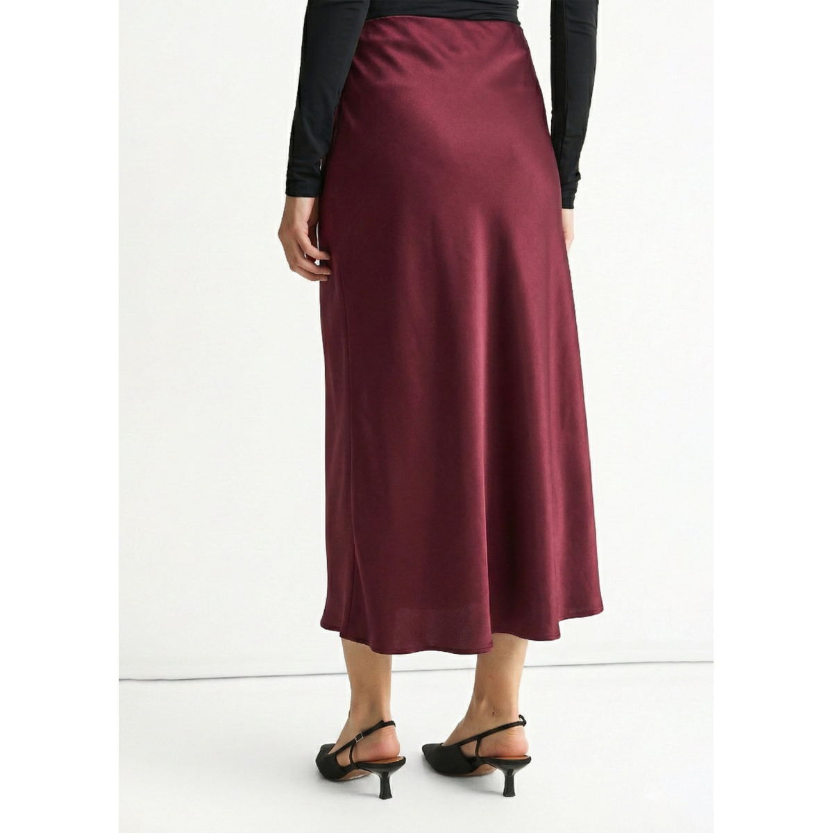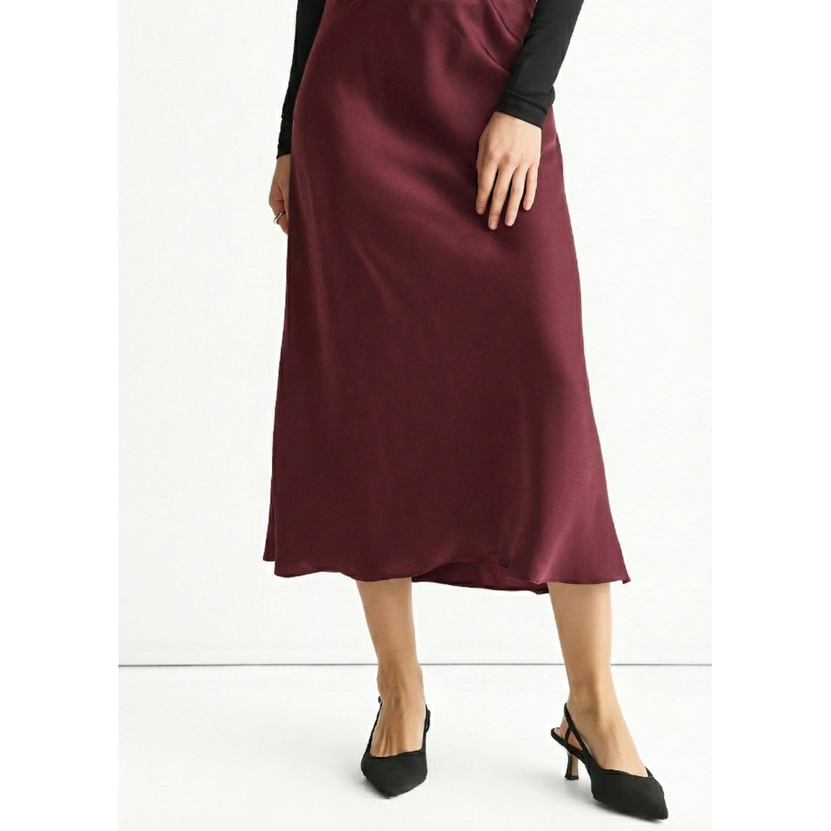 Own the room in this burgundy bias maxi skirt. The angled cut creates fluid movement and a refined shape that flatters every stride, while the jewel-toned burgundy brings undeniable presence to your everyday rotation. Layer it with crisp whites and minimal accessories for understated power, or pair with bold prints for maximum impact. Comfort meets confidence in one essential piece.