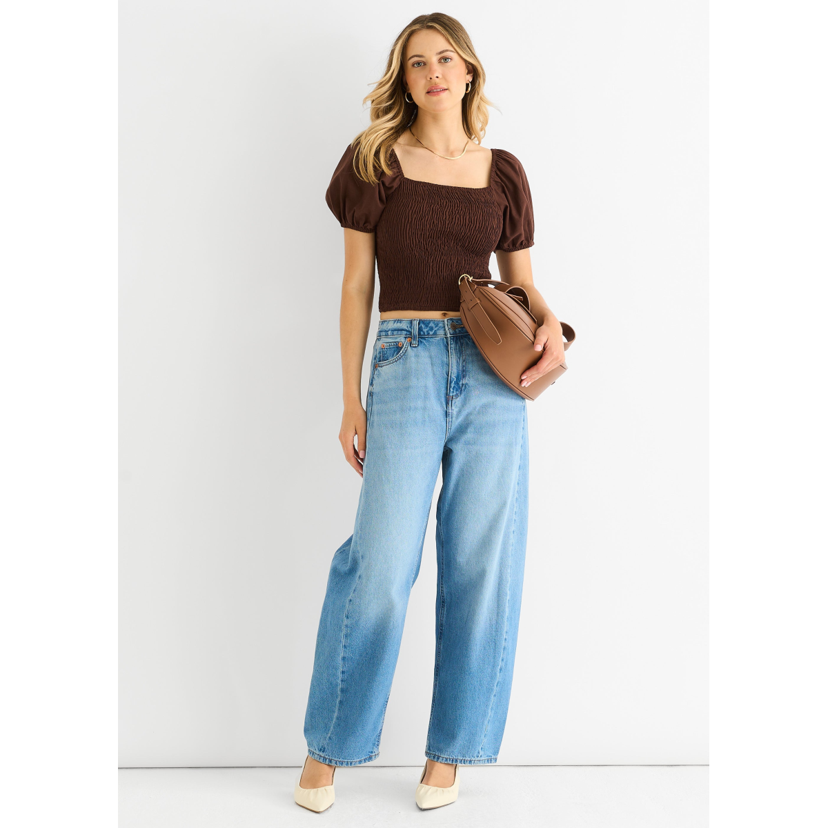 Elevate your style with our Chocolate Puff Sleeve Shirred Cotton Top. Made with luxurious cotton, the shirred design and puff sleeves add a touch of flair to any wardrobe. Stay comfortable and fashionable all day long.
