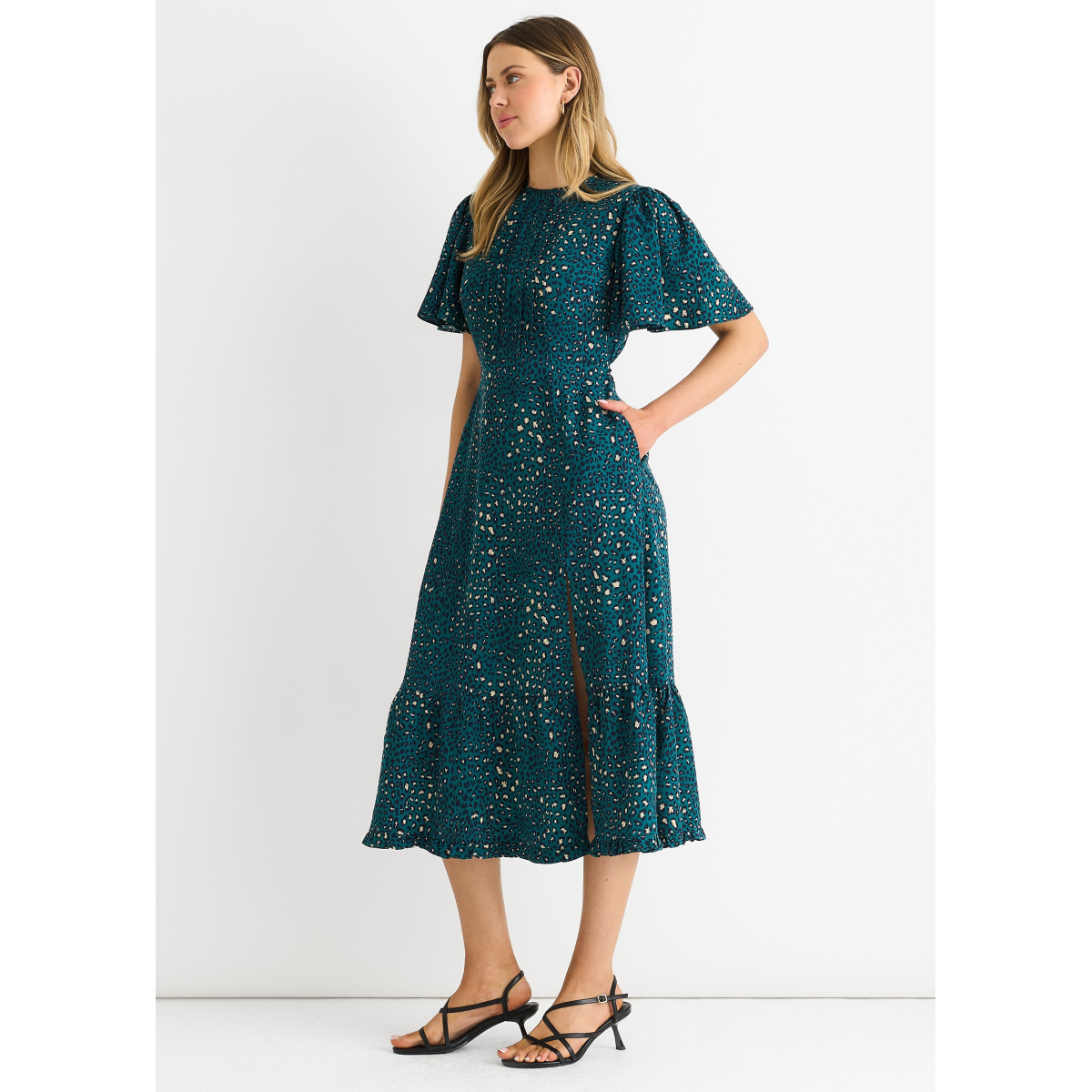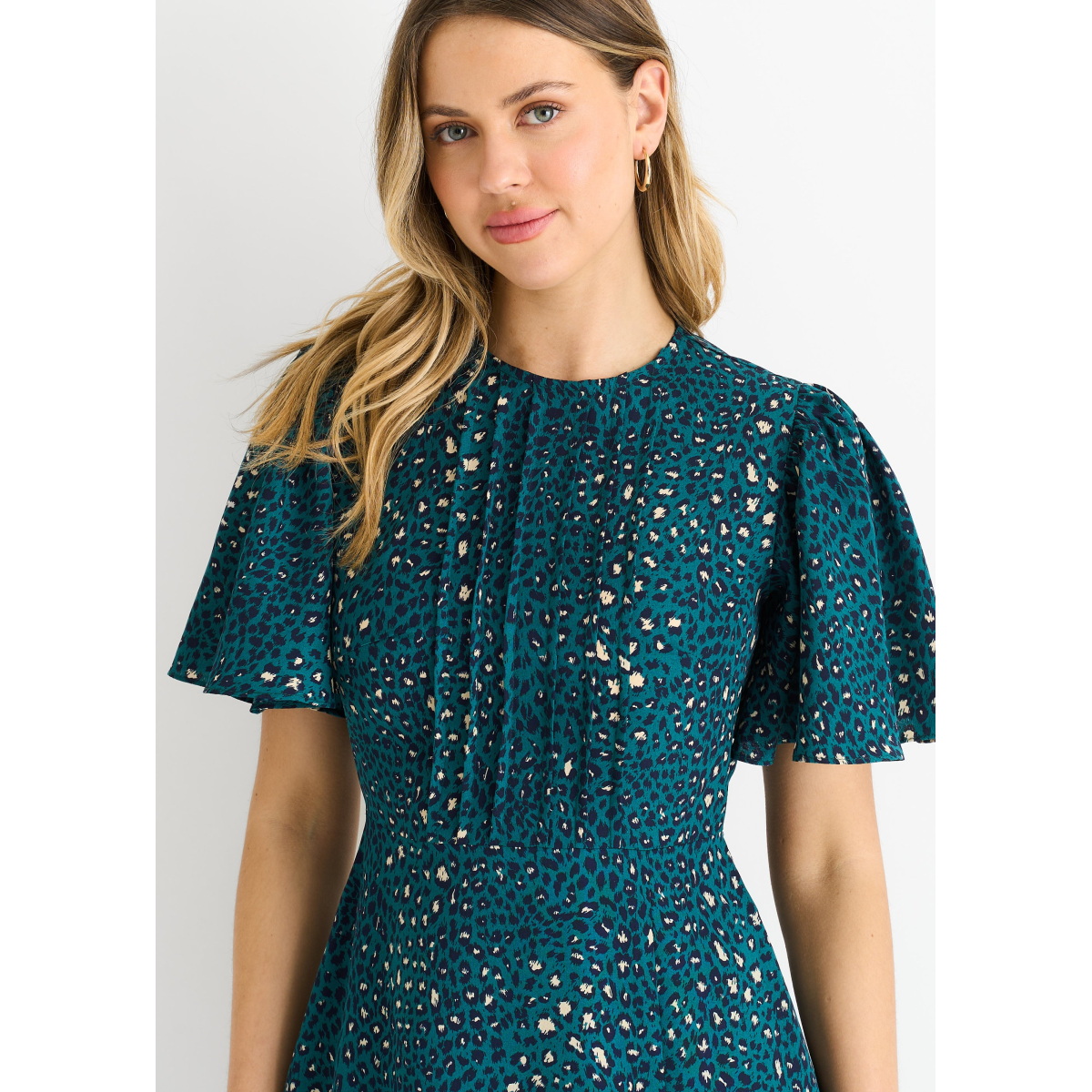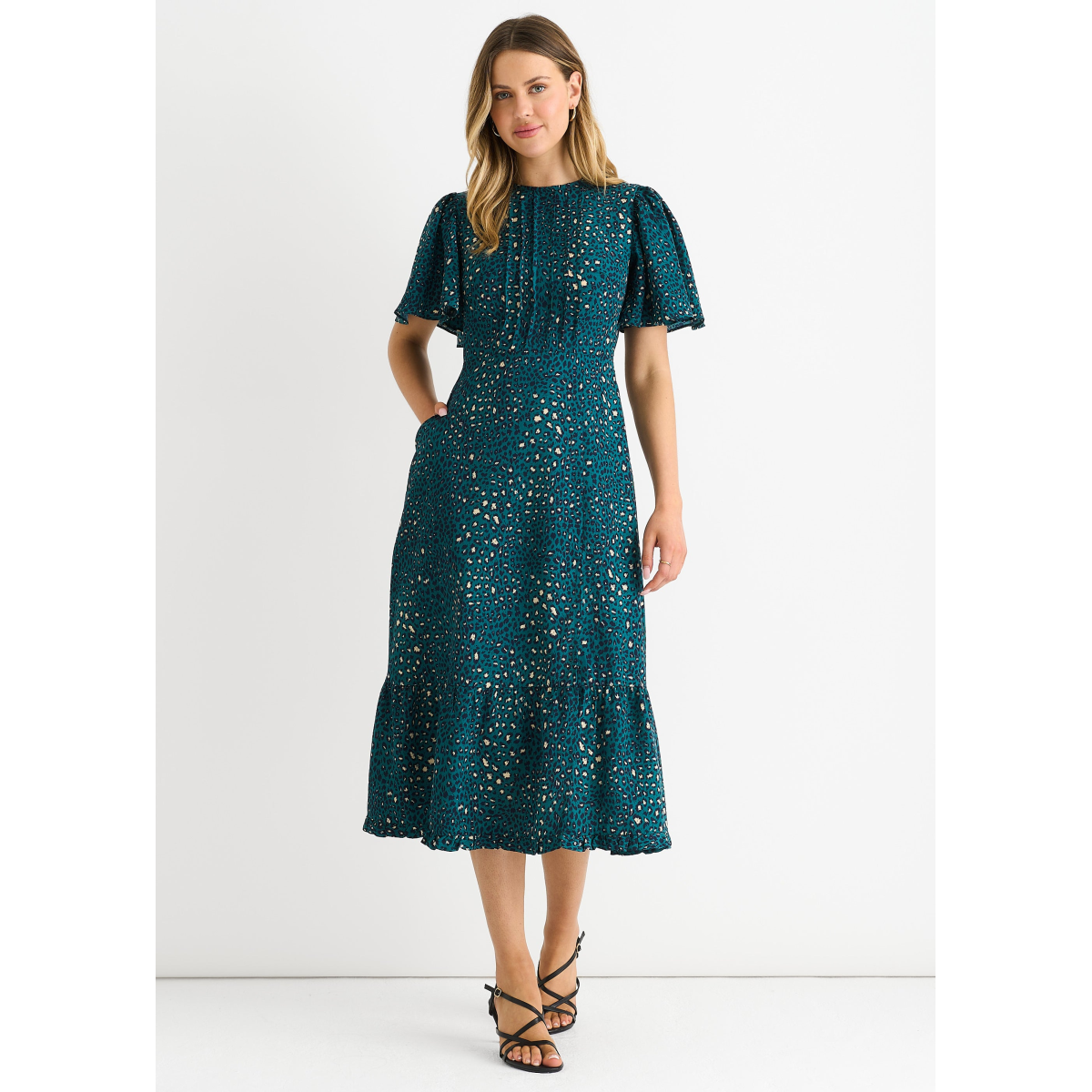Embrace effortless style with this Green Animal Print Smock Tiered Midi Dress. Its loose, tiered design offers all-day comfort while making a bold statement with a vibrant animal print. Perfect for casual and formal occasions, this dress combines a relaxed fit and eye-catching pattern to keep you comfortable and confident wherever you go.