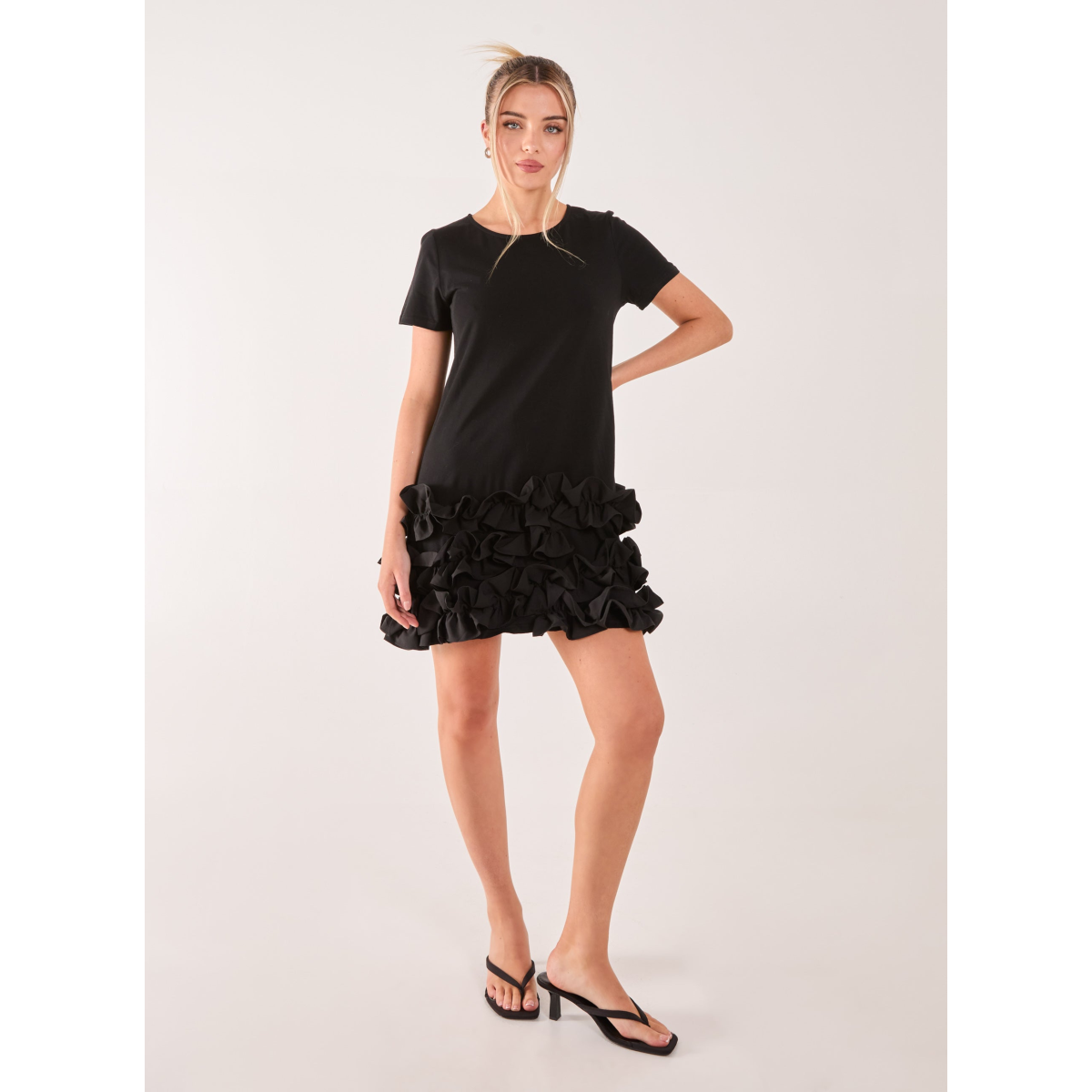 With its triple frill hem detail, this dress is everything you need for the party season. Team with a pair of heels for a must-have dance floor ready style.