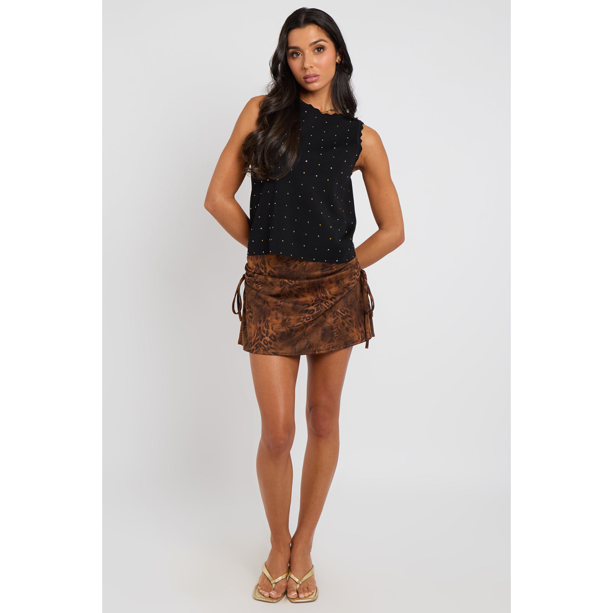 Add a touch of effortless edge to your look with the Animal Suede Mini Skirt. Made from soft faux suede with a subtle animal-print texture, this skirt brings a luxe feel to any outfit. Cut in a classic mini length with a flattering straight silhouette, it’s perfect for pairing with everything from cosy knits to sleek blouses. Dress it up with heels for a night out or keep it casual with ankle boots and a tee.