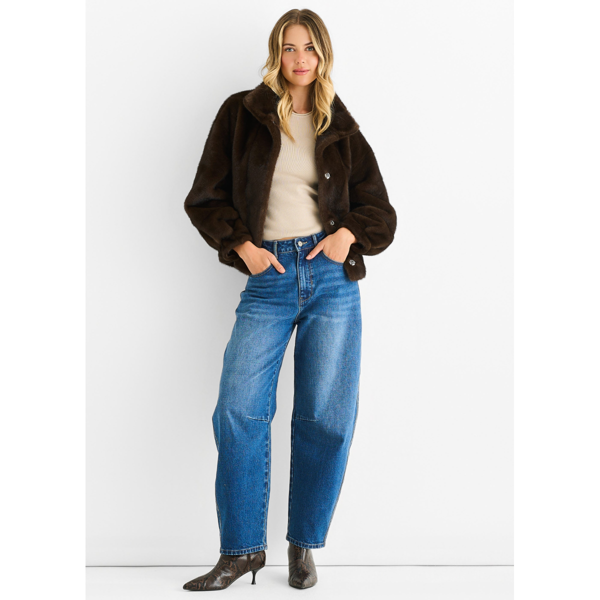 The Coffee Funnel Neck Button Up Faux Fur Jacket offers a cozy, comfortable fit with a bold edge. Its warm coffee color and soft faux fur create a stylish look, while the funnel neck and button-up design provide extra warmth and easy layering. Perfect for casual days when you want to stand out with confidence.