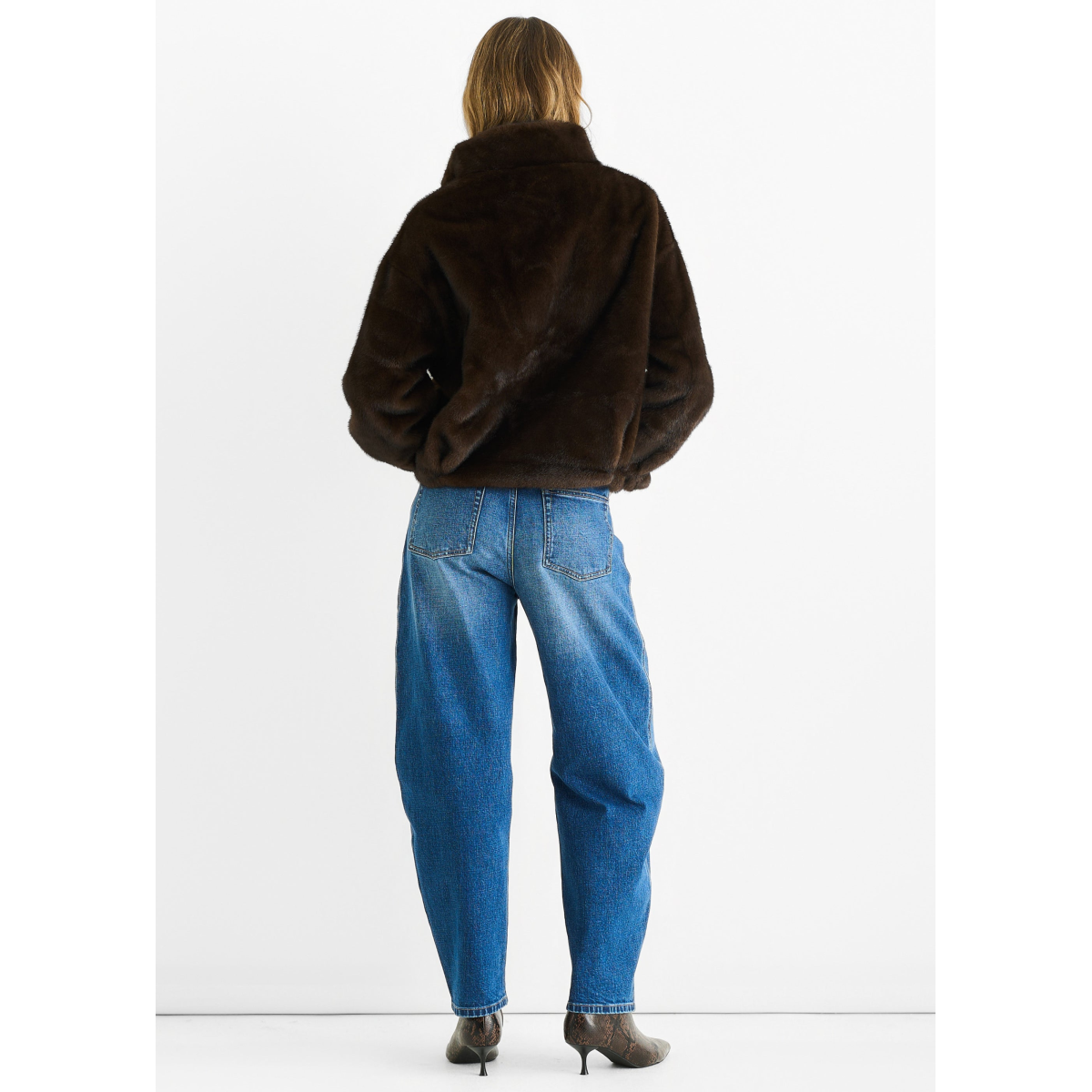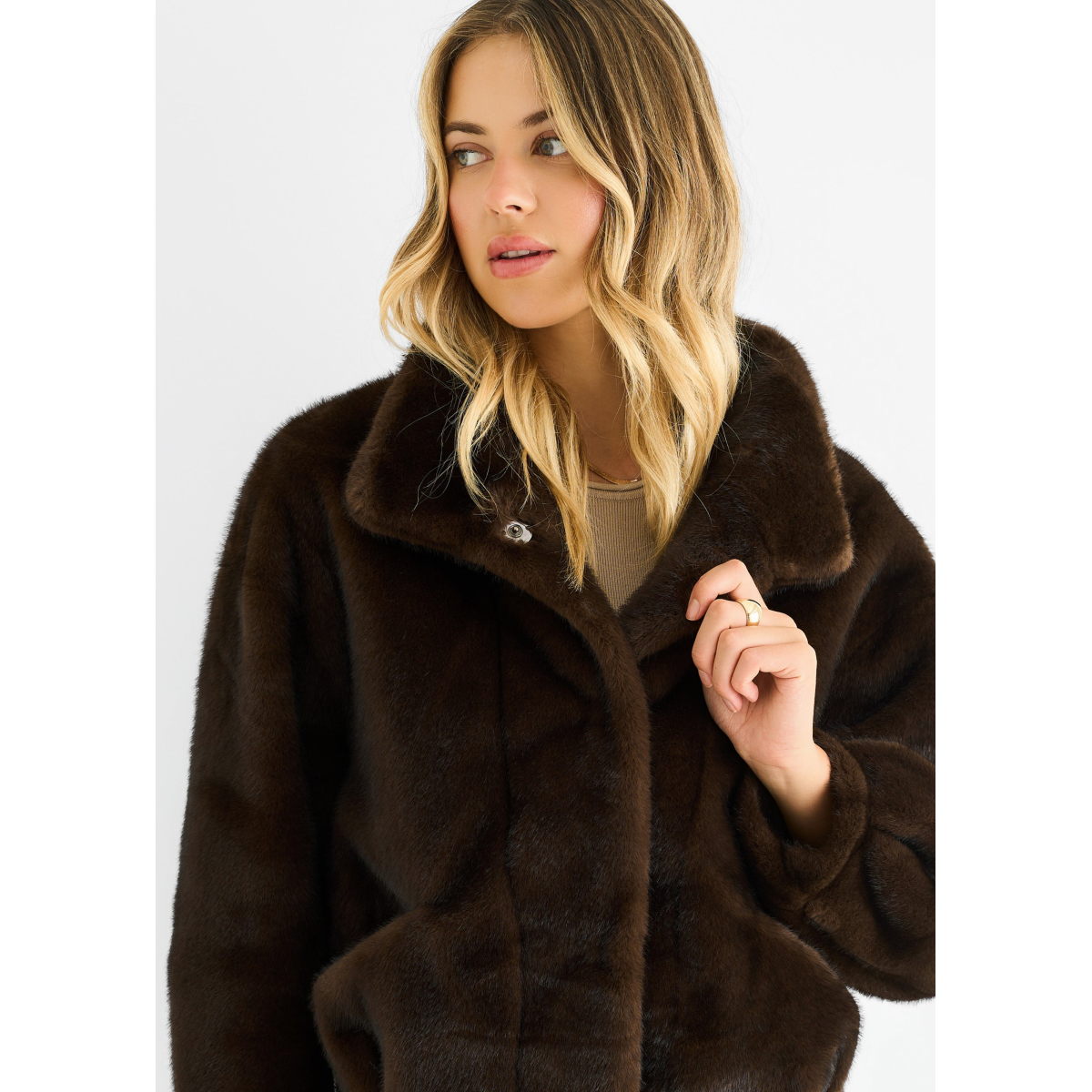 Coffee Funnel Neck Button Up Faux Fur Jacket