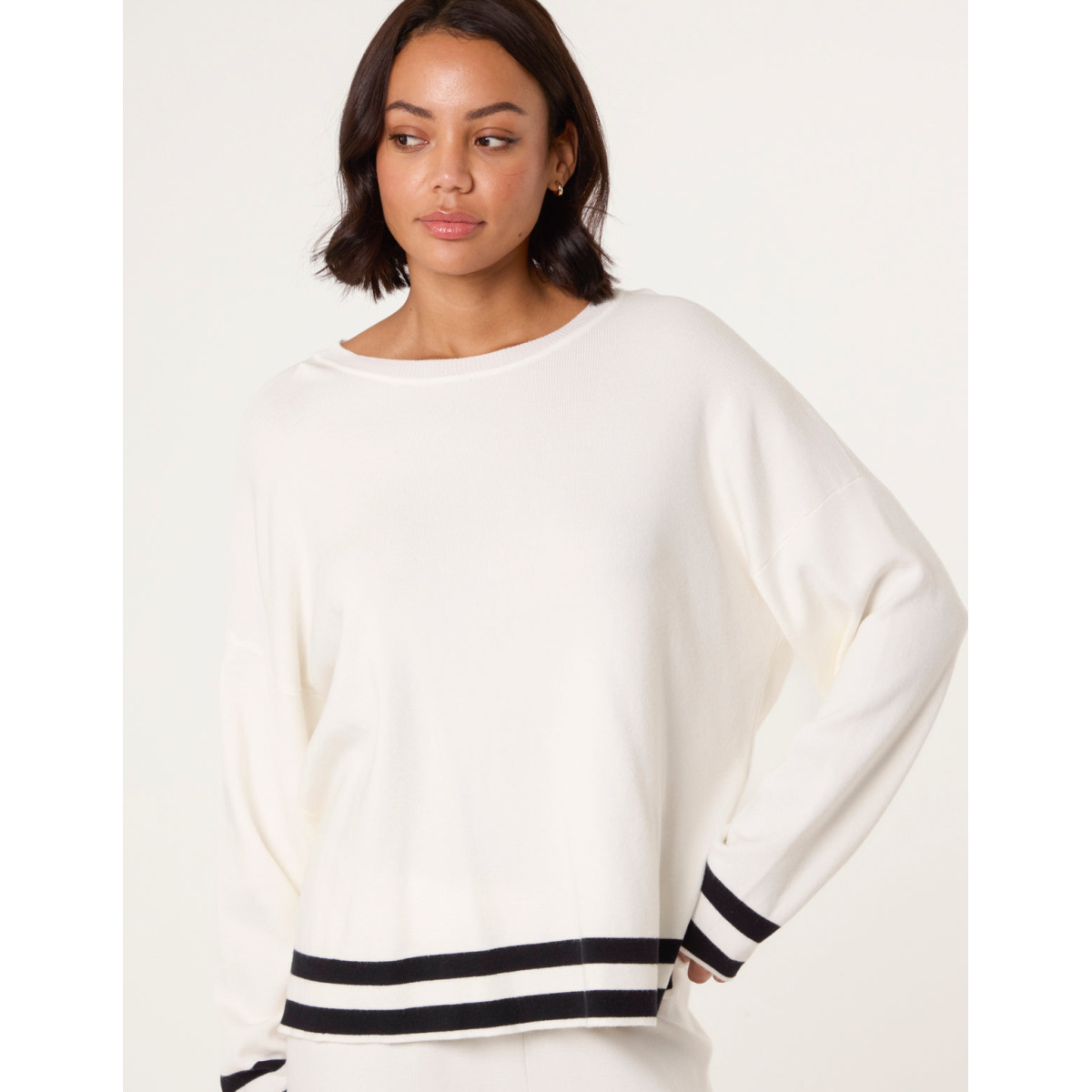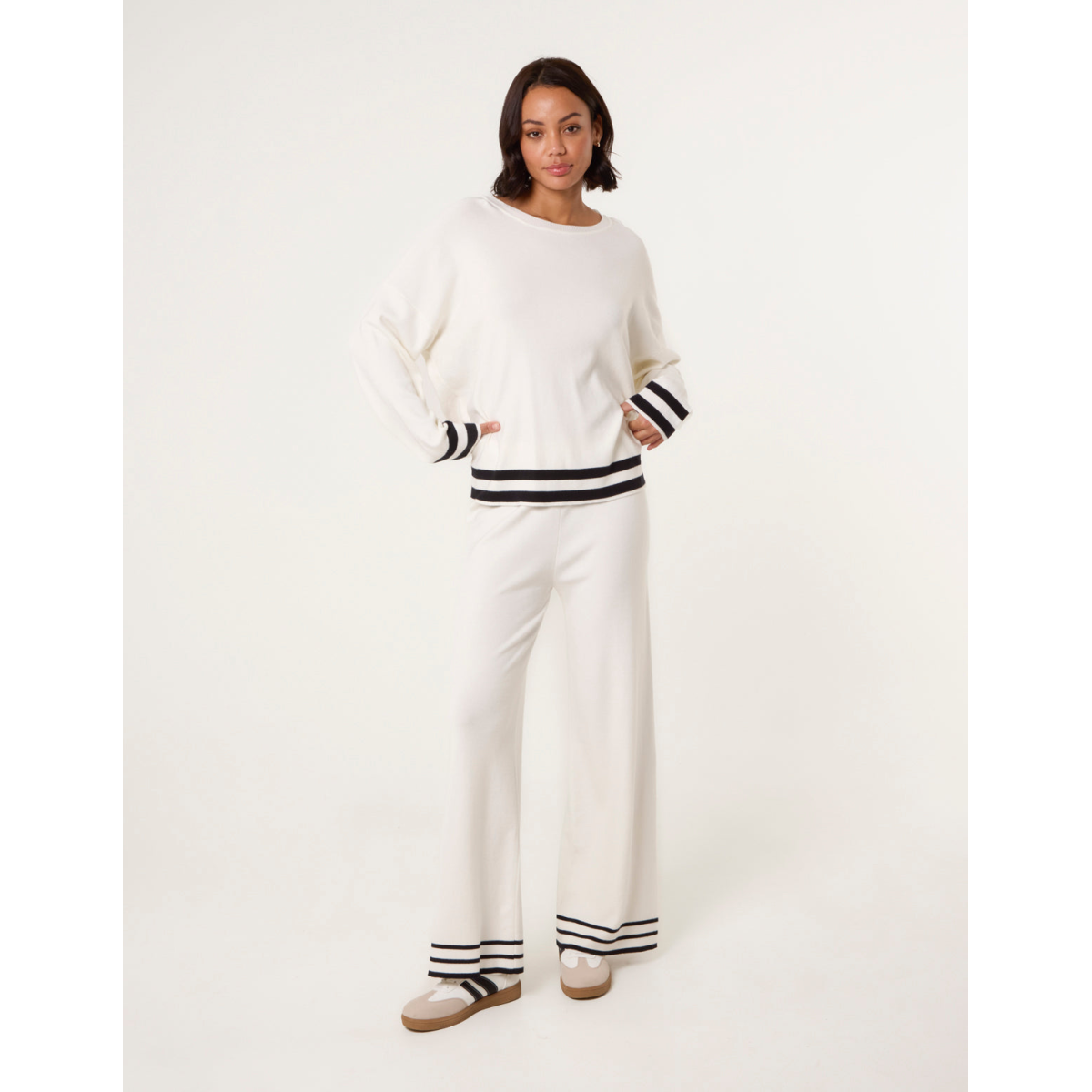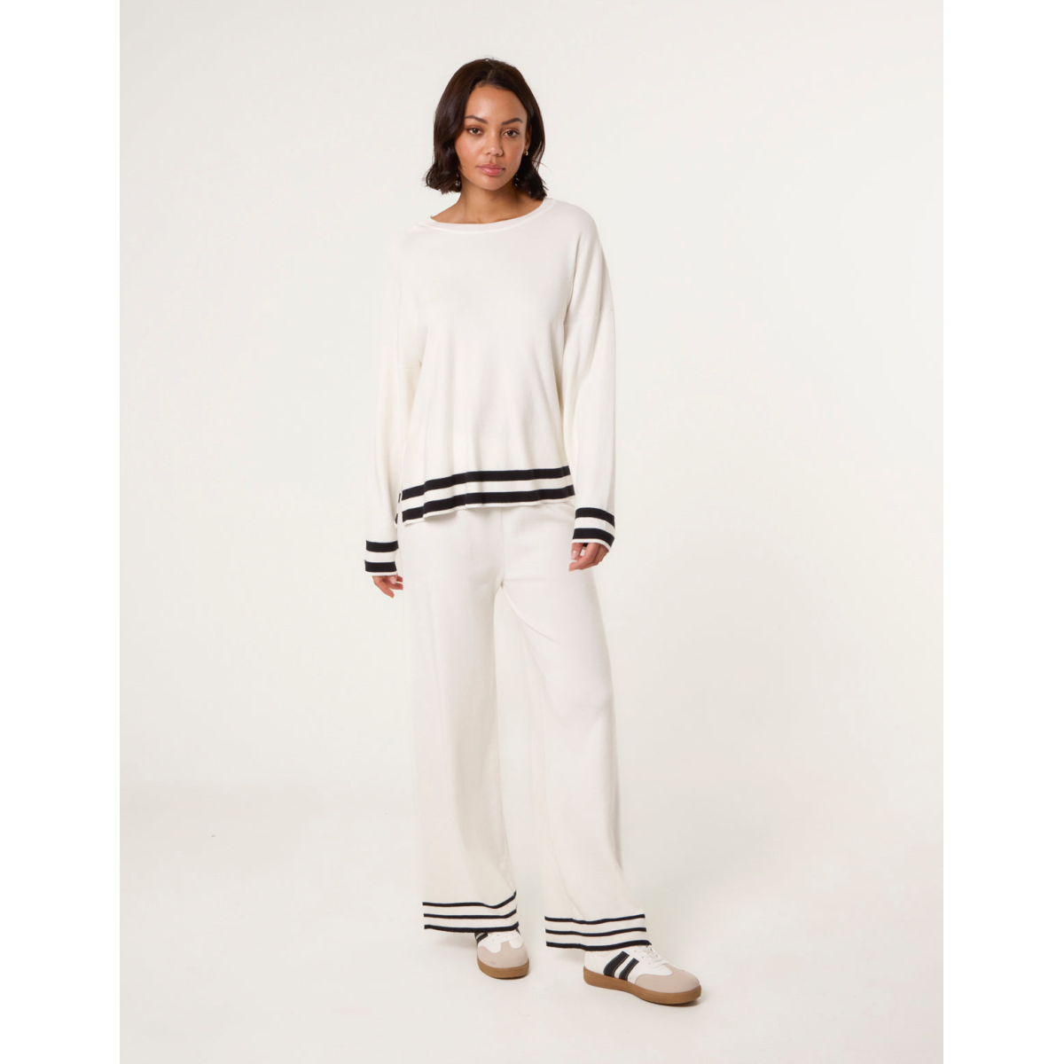 A trendy kind of loungewear set. With its contrasting stripes making this set is super chic and stylish.