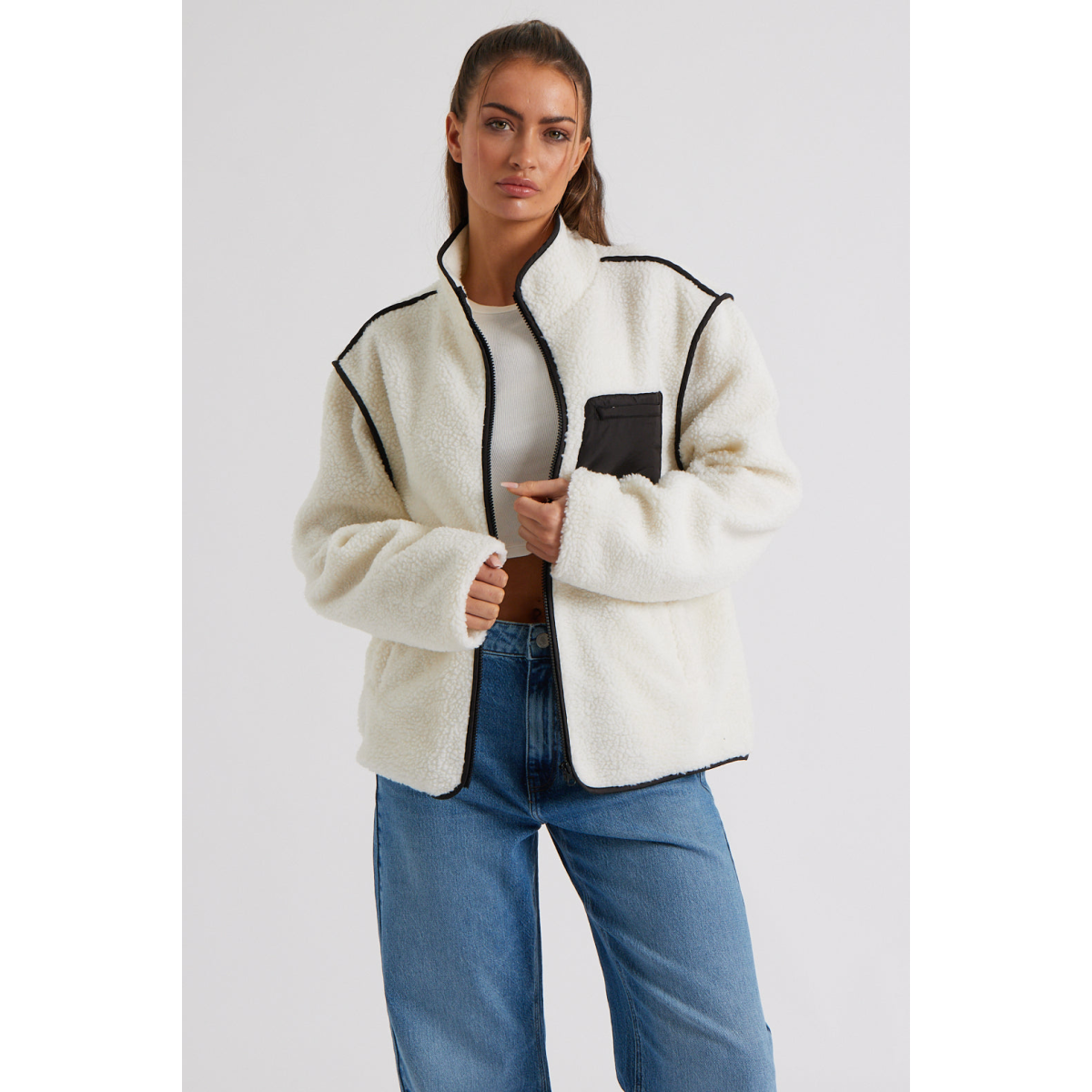 Luxuriously soft, our cream fleece material not only keeps you warm throughout the colder months but also shouts style and sophistication. Whether you're running errands in the town or heading for a weekend getaway in the countryside, this jacket effortlessly blends style and functionality.