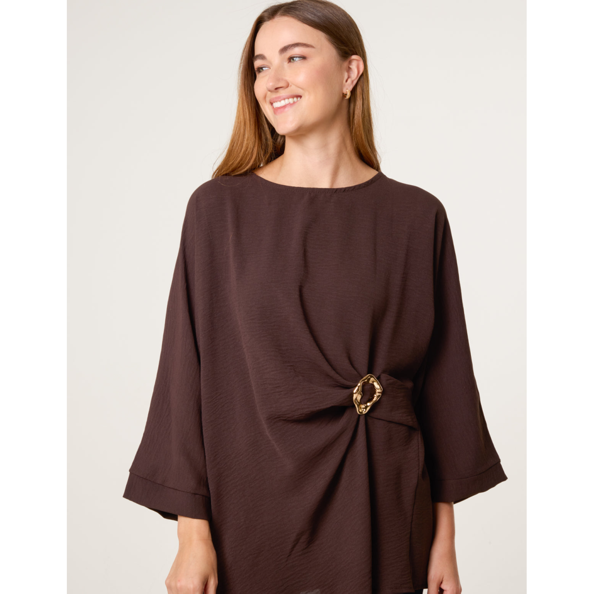 Elevate your workwear staples this season by wearing this brooch detailed top. Helping to create a simple but classy outfit when teamed with a PU skirt and tights.