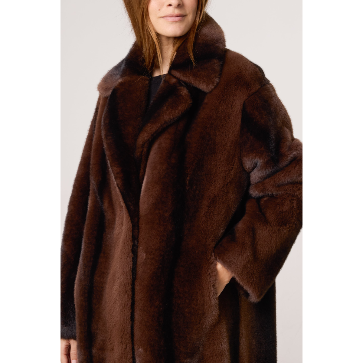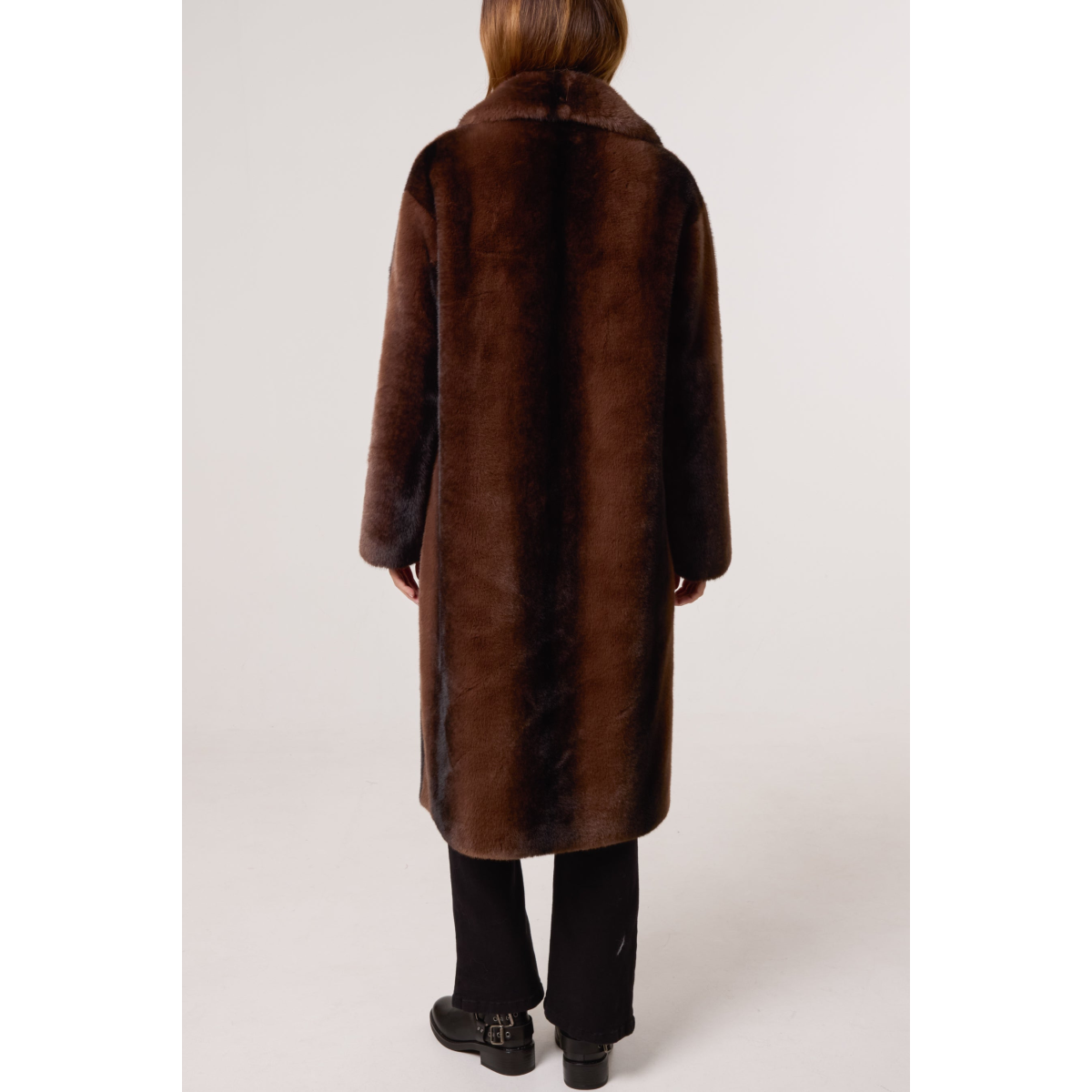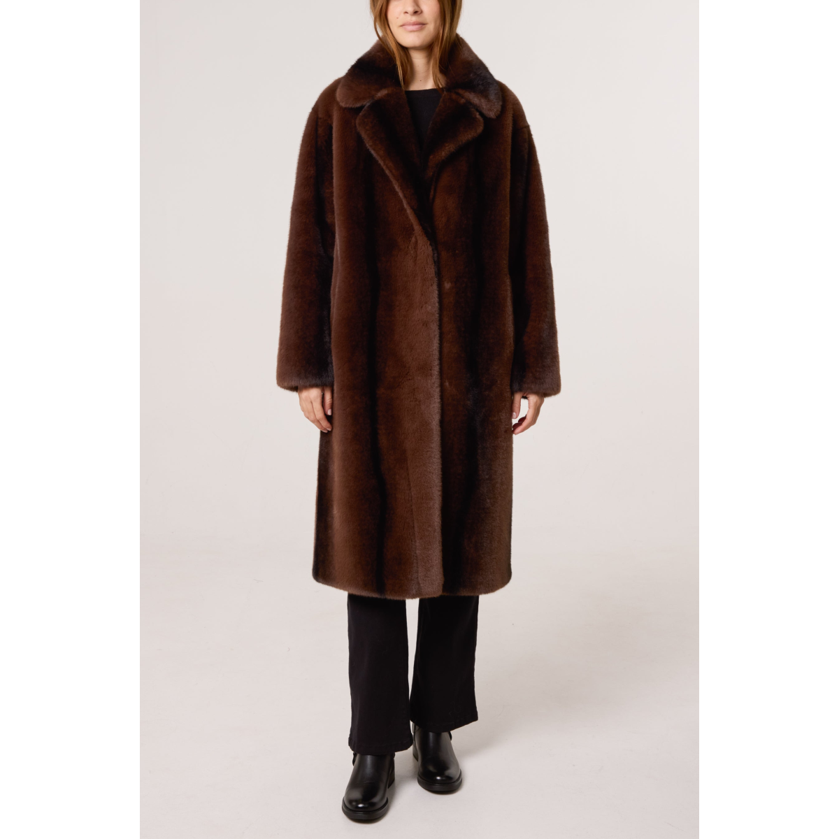 A stunning faux fur coat with trim details. This coat will provide all the glam you need all season long.