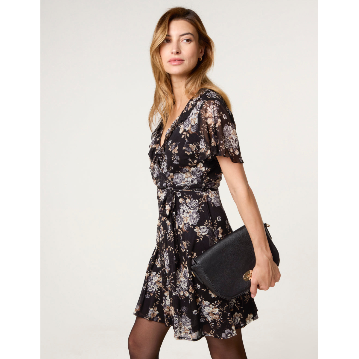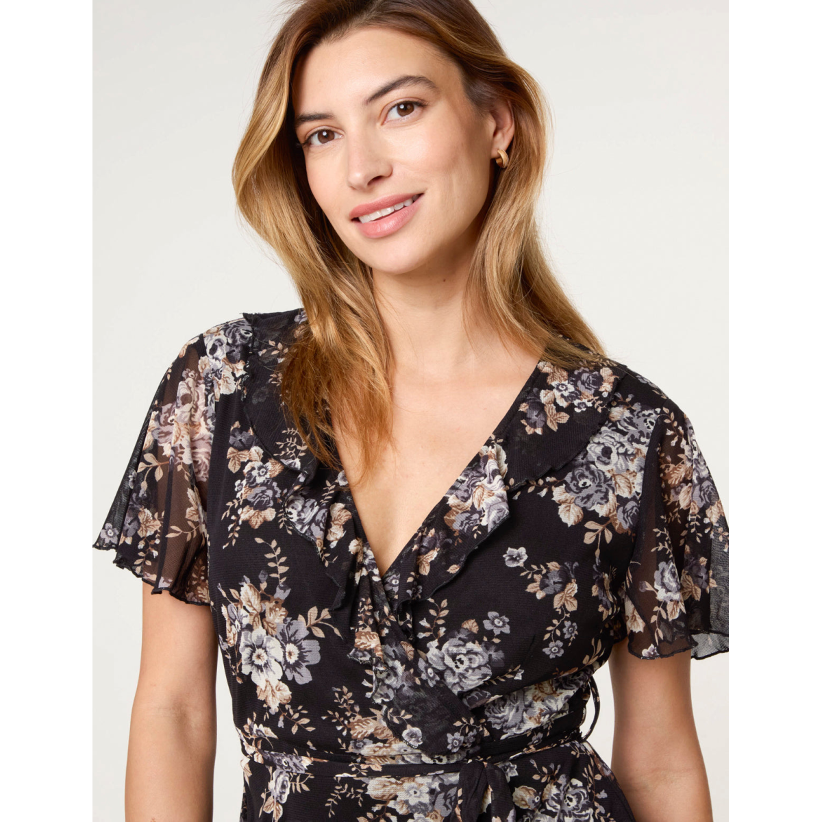 A chic pick for the office. Team this frill hem mini dress with tights, pumps and a mac coat.