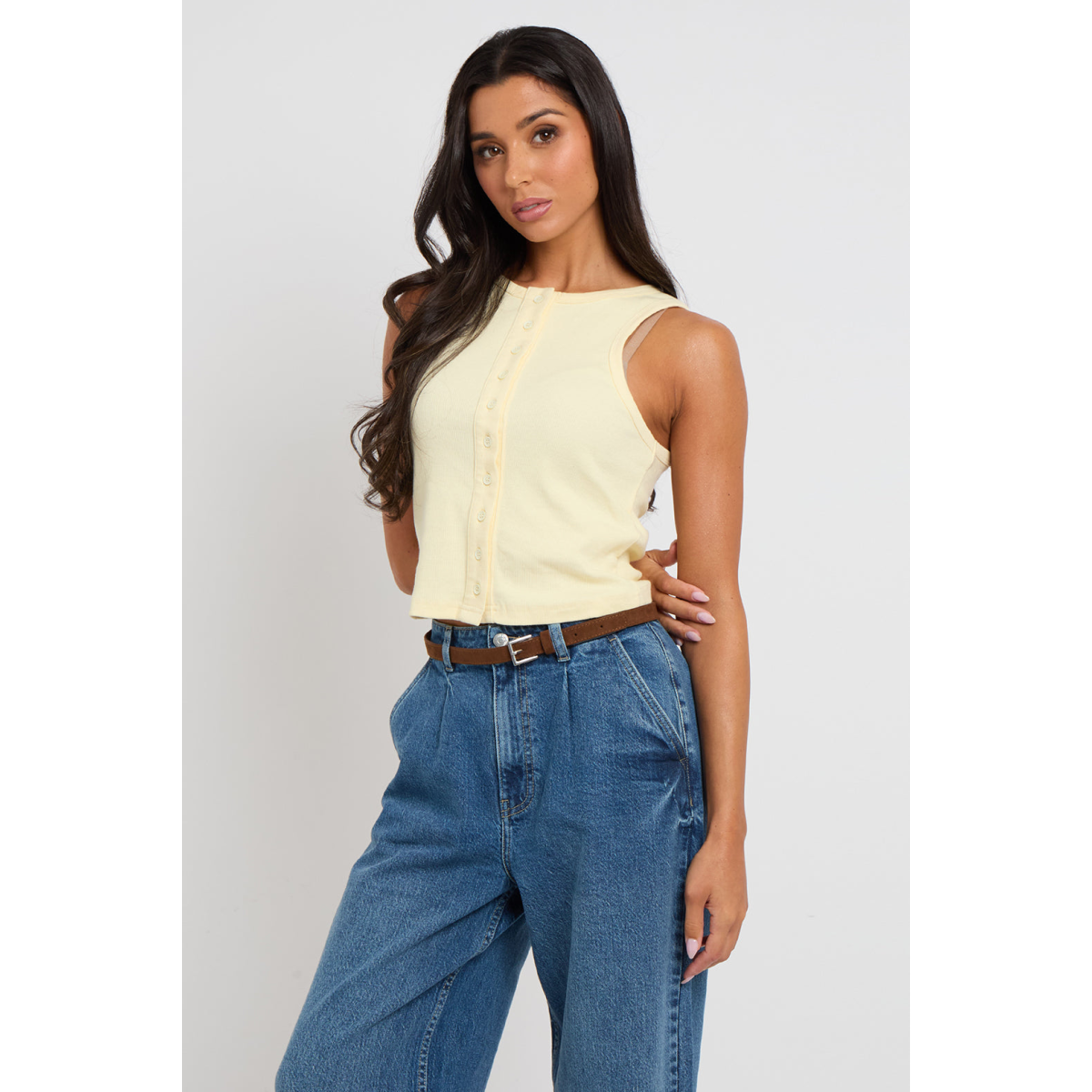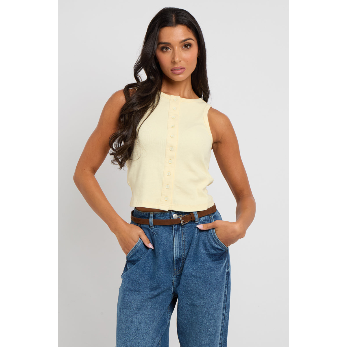 A chic and versatile staple, this Sleeveless Button Front Top is designed with a sleek button-down front and a lightweight, breathable fabric for all-day comfort. The sleeveless cut makes it perfect for warm weather or for layering under blazers and jackets.