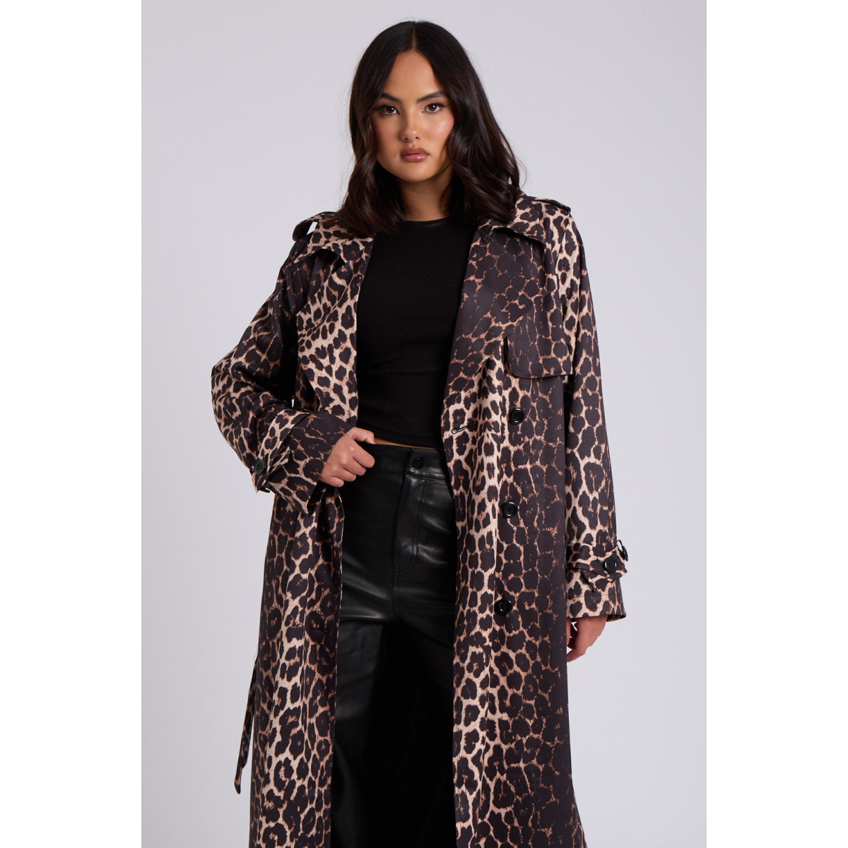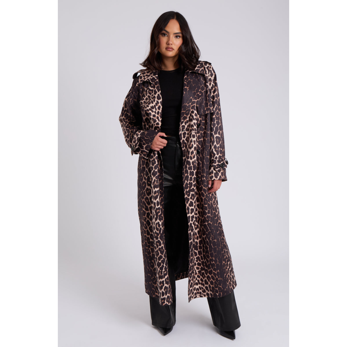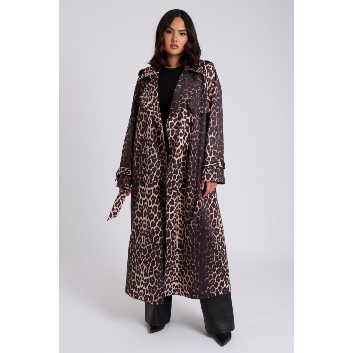 The Leopard Print Trench is a bold reinterpretation of a classic wardrobe staple, offering both style and function. Crafted from lightweight yet durable fabric, this trench features an all-over leopard print for a striking, fashion-forward look. The traditional trench coat details, such as a double-breasted front, wide lapels, and a belted waist, add structure and sophistication, while the animal print brings a contemporary edge. Perfect for layering in transitional weather, the Leopard Print Trench adds a touch of personality and glamour to any outfit, making it a standout piece for both casual and elevated ensembles.