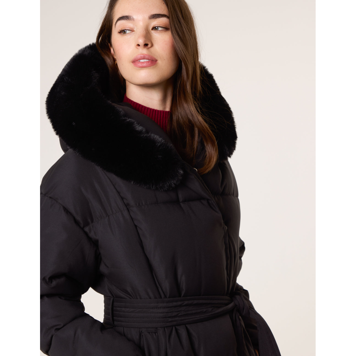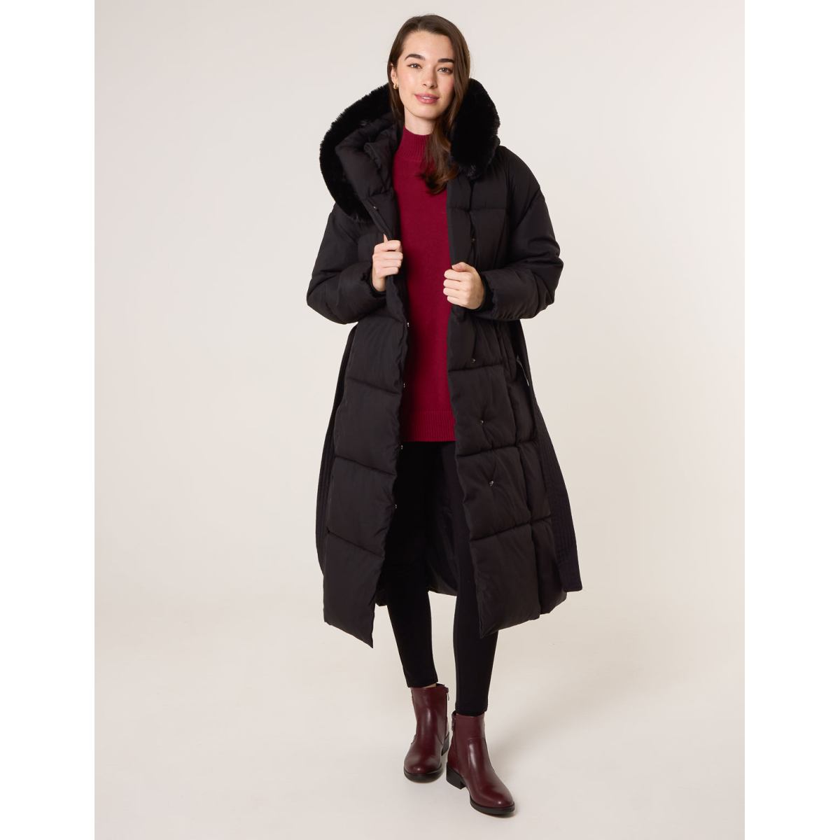 Enjoy warmth and style with this black longline puffer jacket throughout those colder days. This jacket is super versatile and the perfect through on for day to day life.