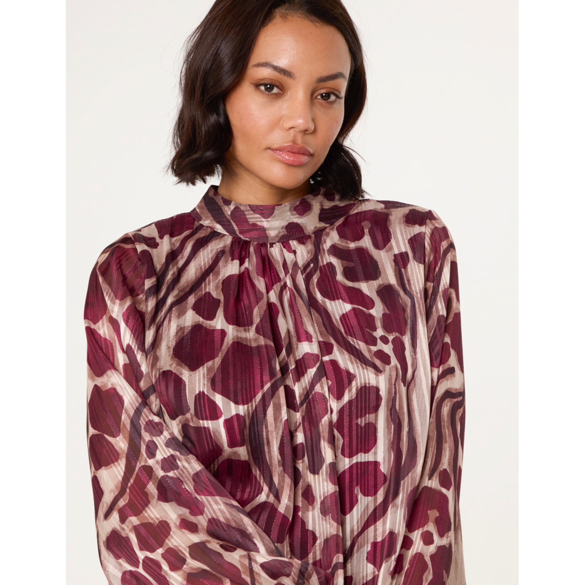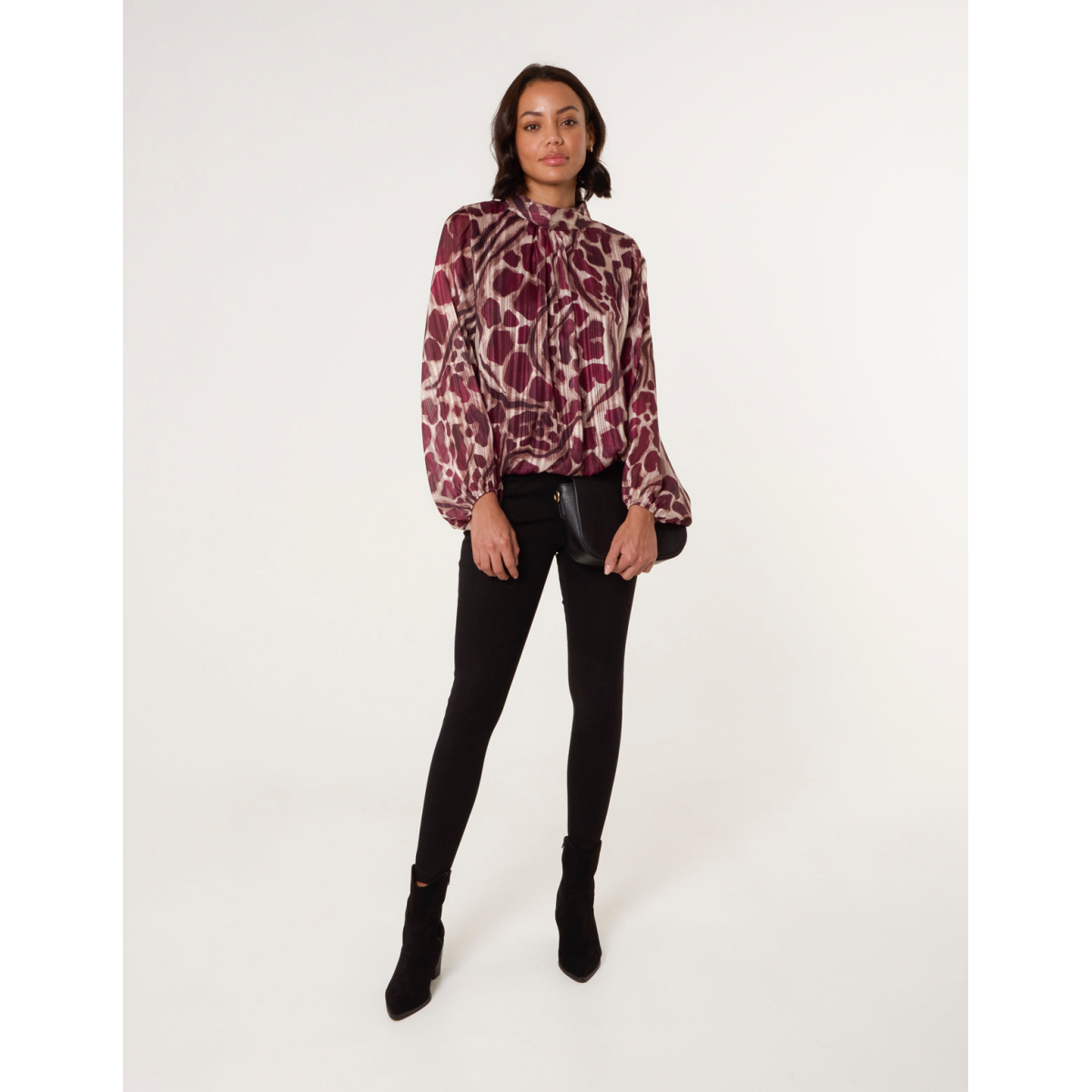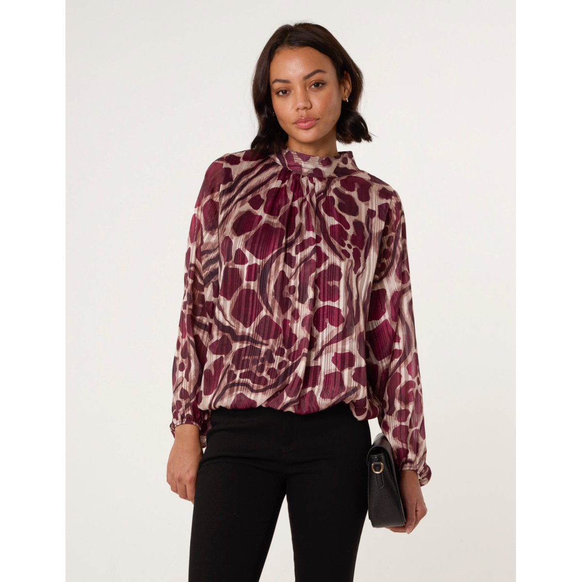 It's time to add a spin to your everyday blouse, this high neck puffball top adds a unique look to your workwear collection.