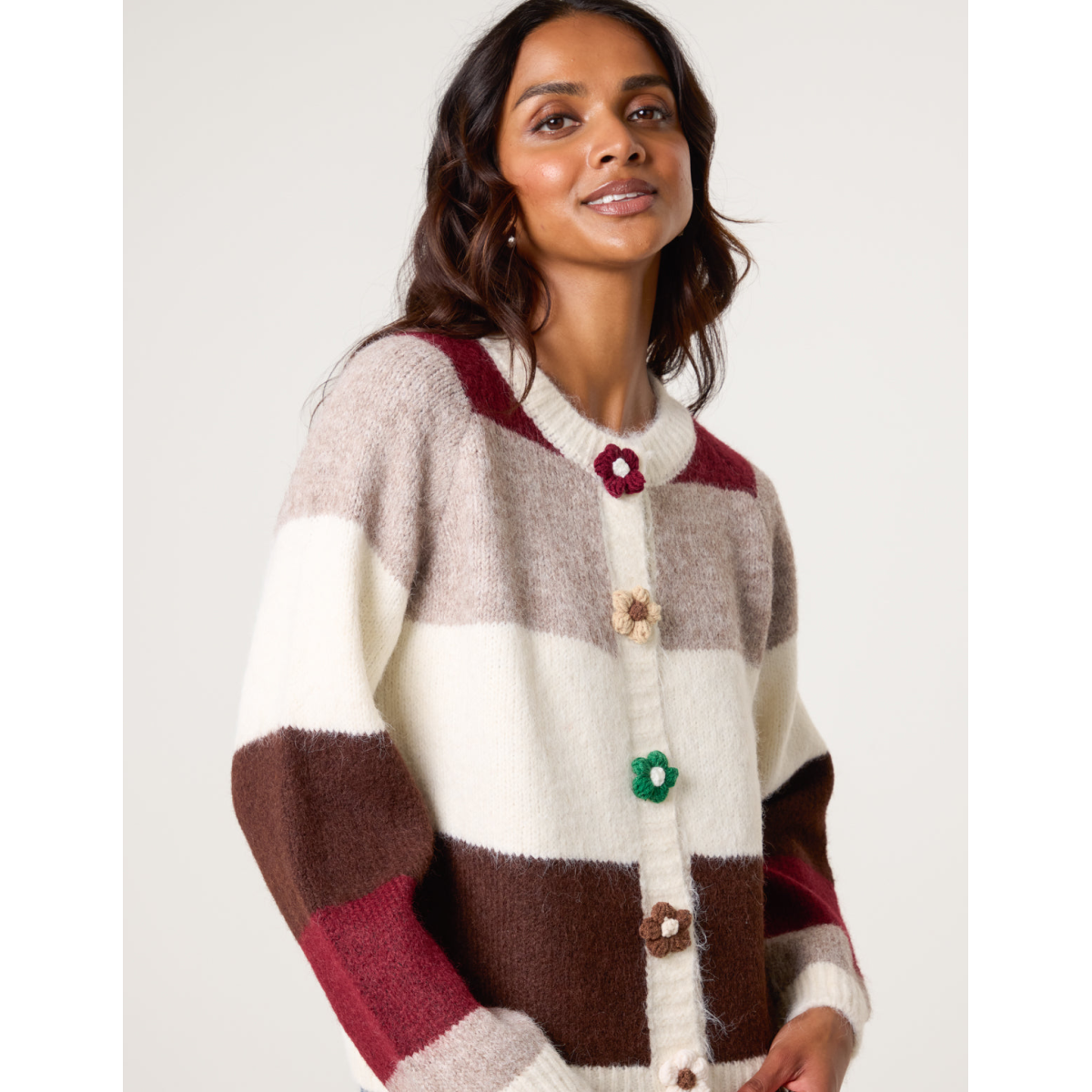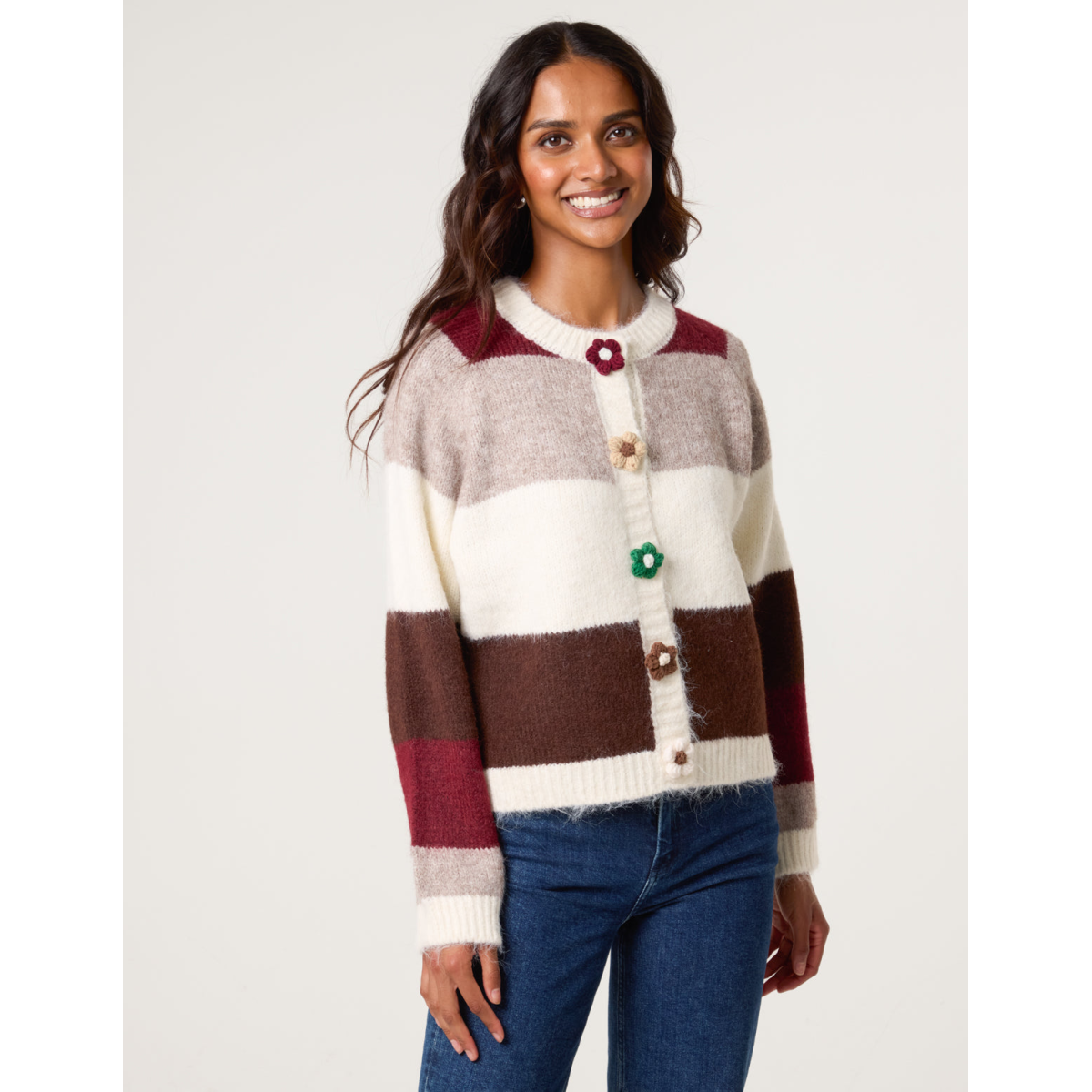 A fun and most of all the cutest cardi of the season! With its flower detailing buttons this little number will leave any outfit it's teamed with looking the cutest.