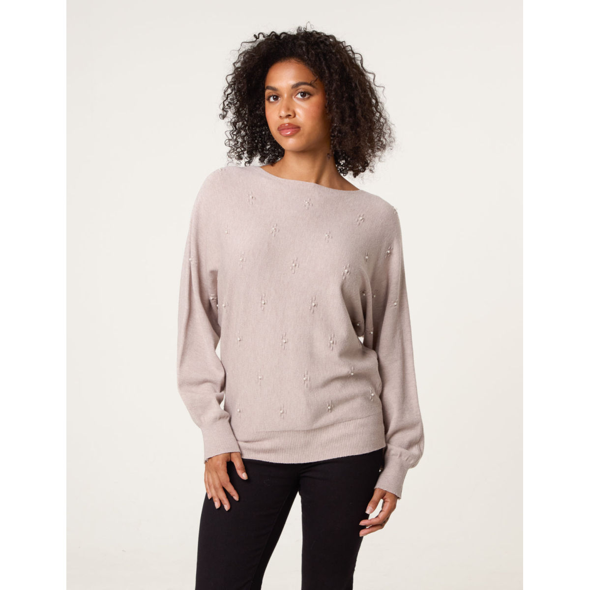 A comfy jumper perfect for a Sunday. Whether you take a winter walk, or are snuggled on the sofa this pearl detailed jumper is perfect for it.