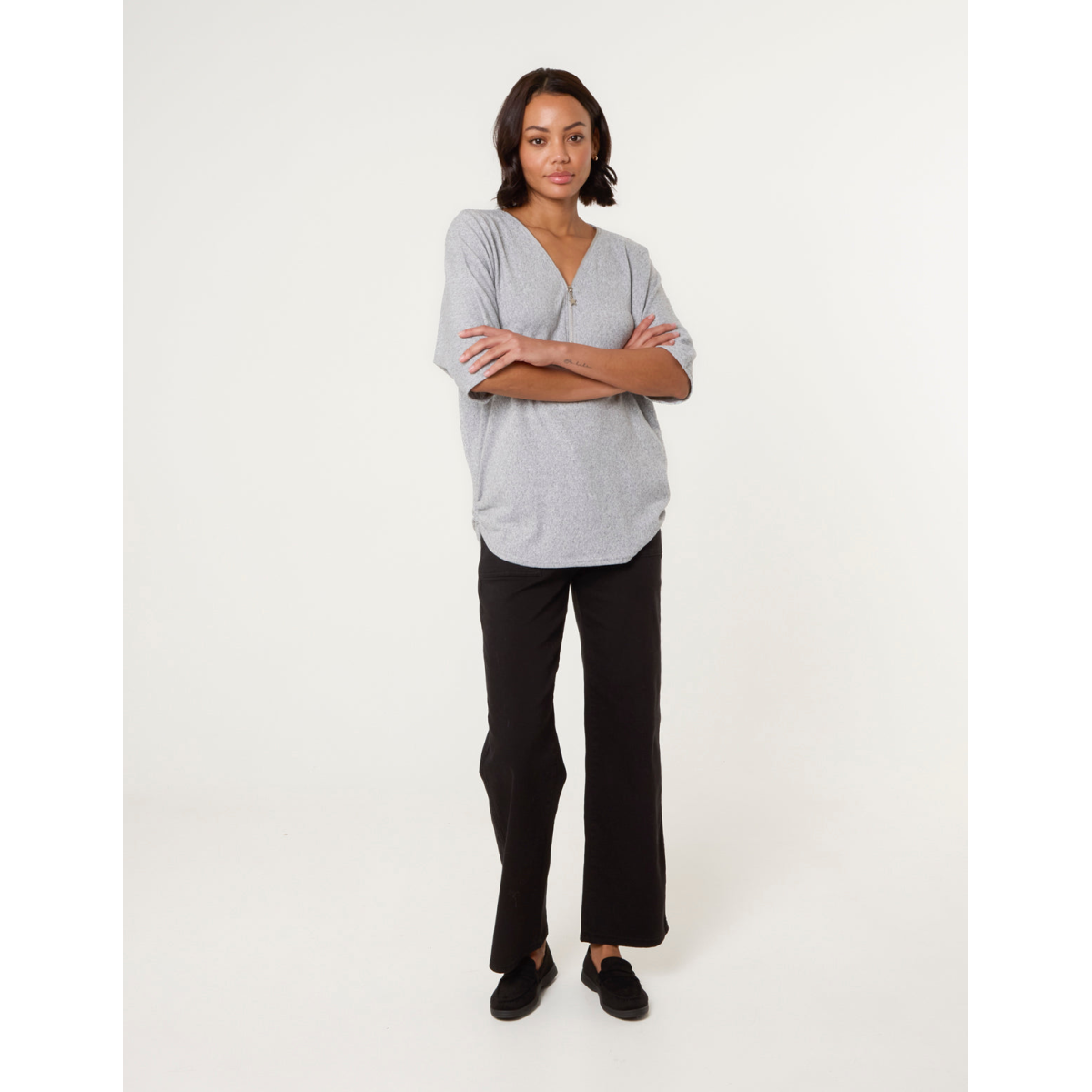 Here is a comfy option! Team this zip front top with jeans and trainers, for the perfect day-to-day look that will leave you feeling extra comfy!