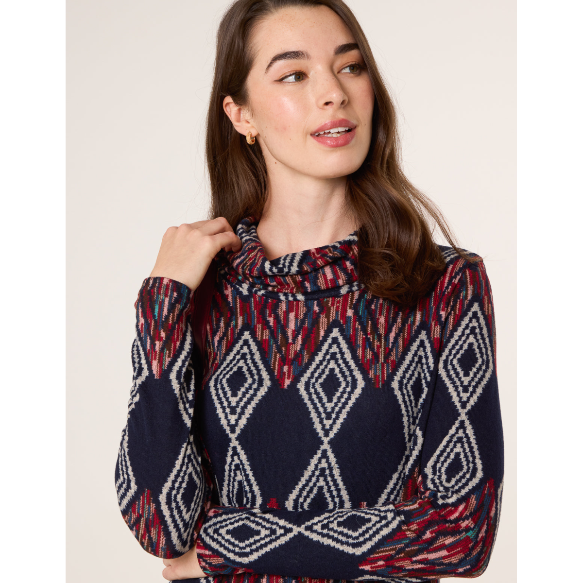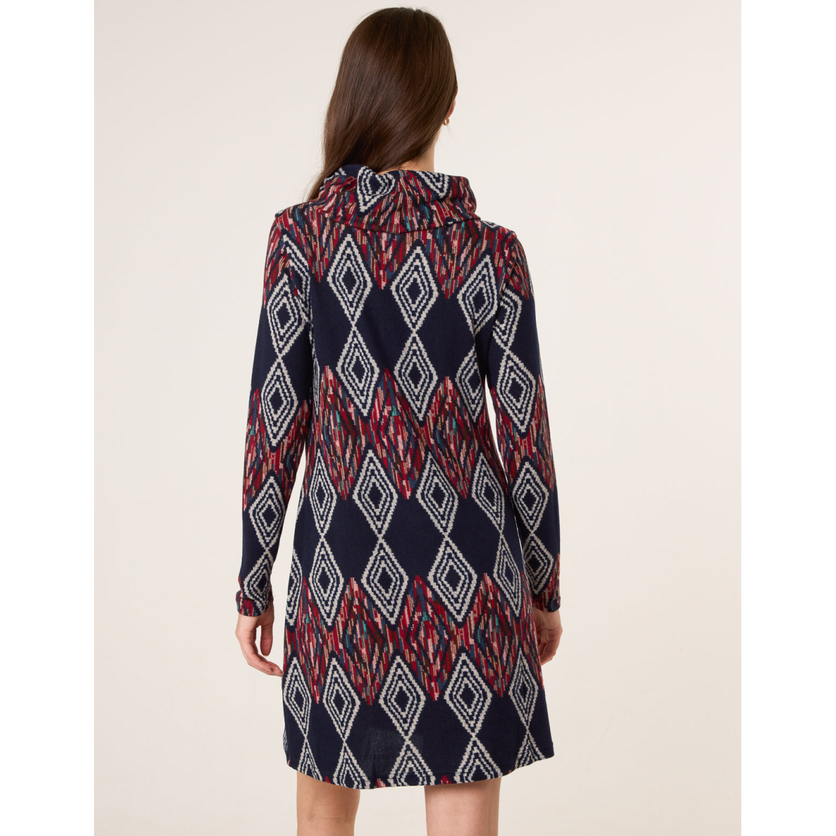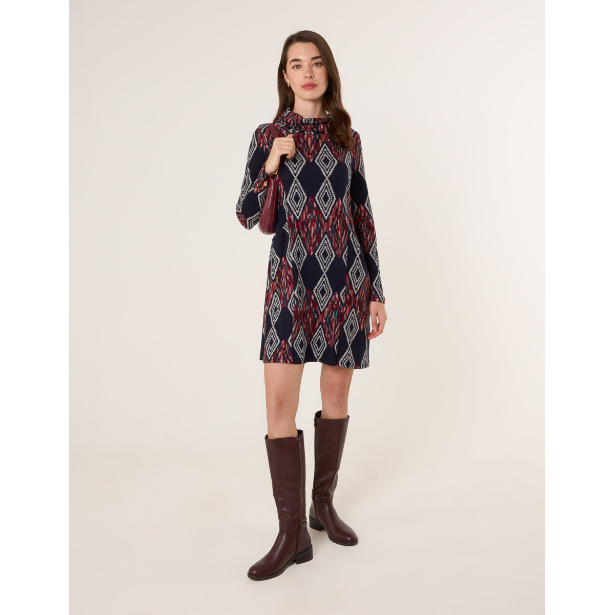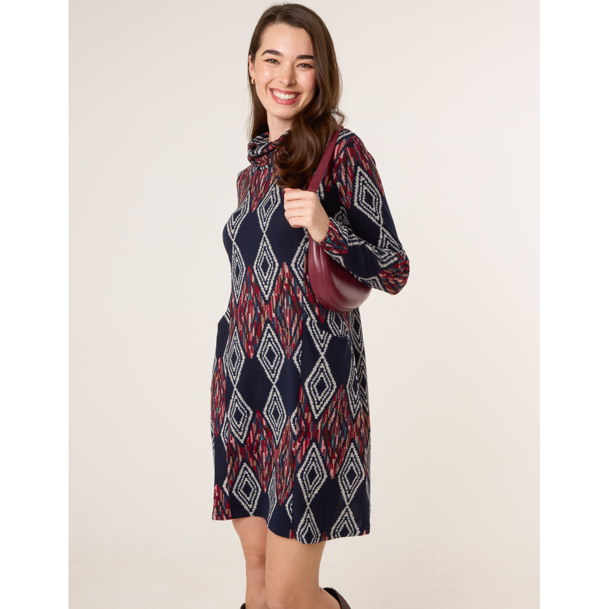 This eye-catching printed dress designed for comfort. Day to day team with tights and pumps.