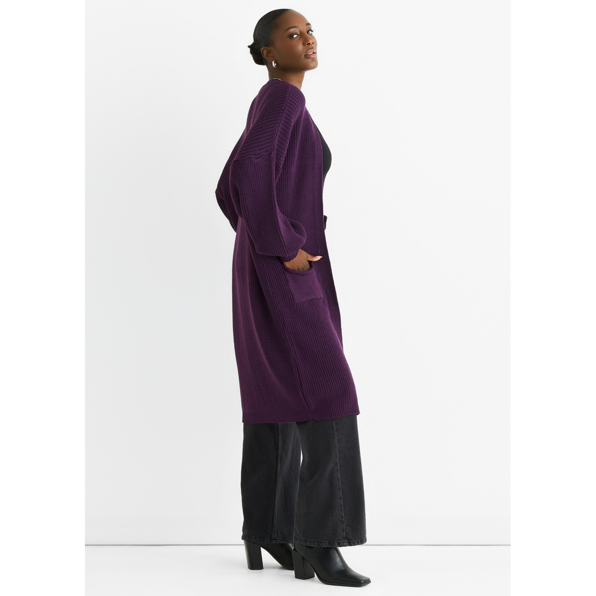 Wrap yourself in cozy comfort with this Purple Chunky Knit Long Cardigan. Its thick knit texture adds warmth and a bold pop of color, perfect for layering on chilly days. The long design ensures extra coverage and a relaxed fit that moves with you, making it your go-to piece for casual, comfortable style.