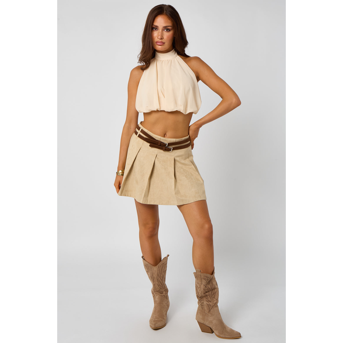 Bring timeless sophistication to your wardrobe with the Suede Belted Pleated Skirt. Crafted from soft faux suede, it offers a luxurious feel and elegant drape. Featuring pleats that create graceful movement and a detachable belt to cinch the waist, this skirt is as flattering as it is versatile. Pair it with a tucked-in blouse and boots for an elevated daytime look or style it with heels and a fitted top for evening polish.