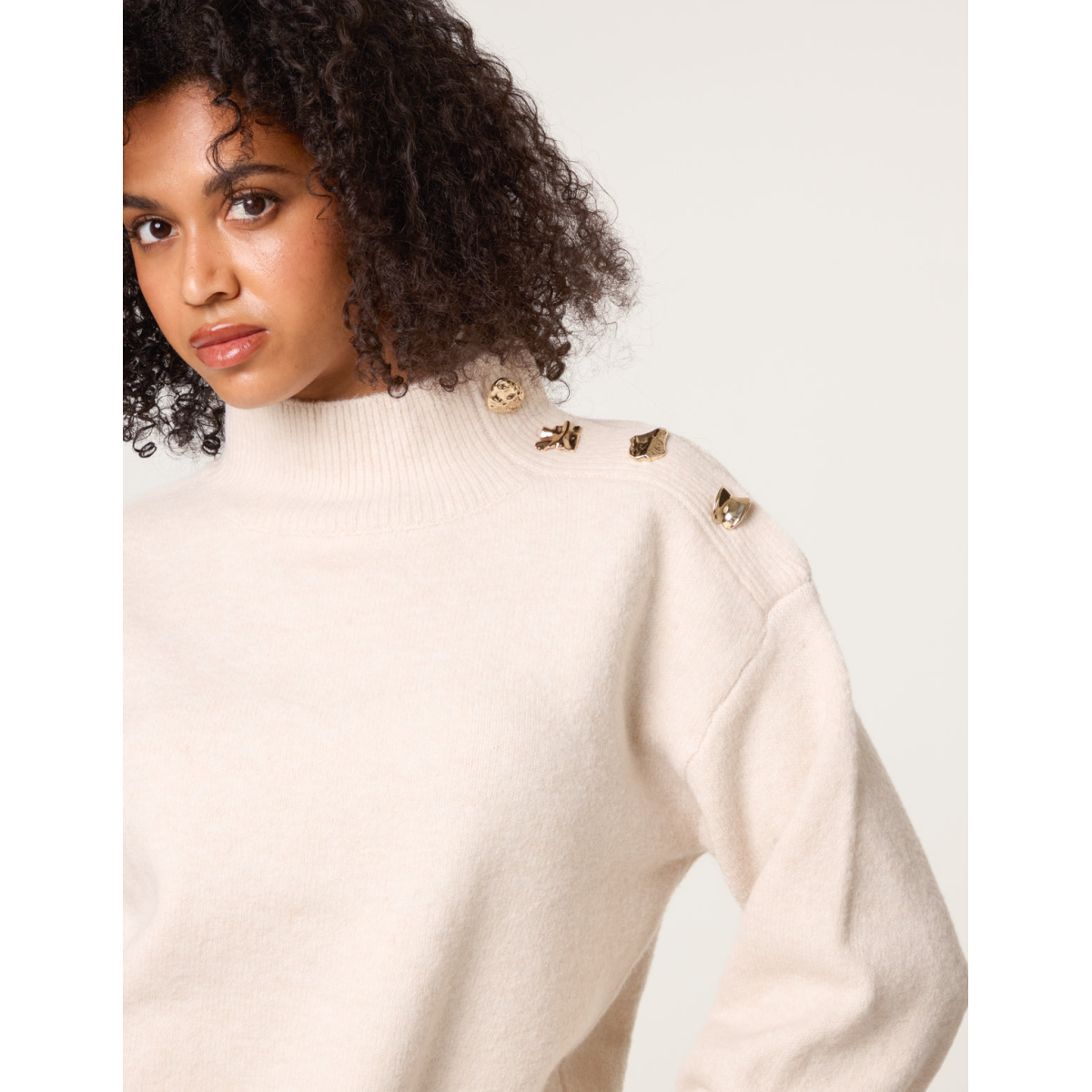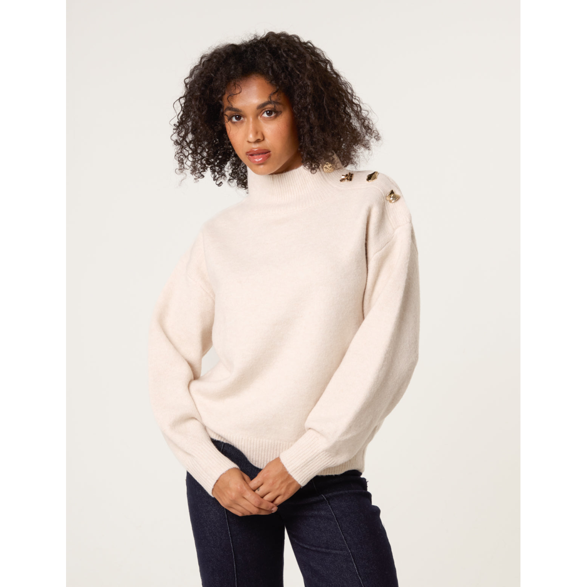 Turtle Neck Shoulder Brooch Detailed Jumper