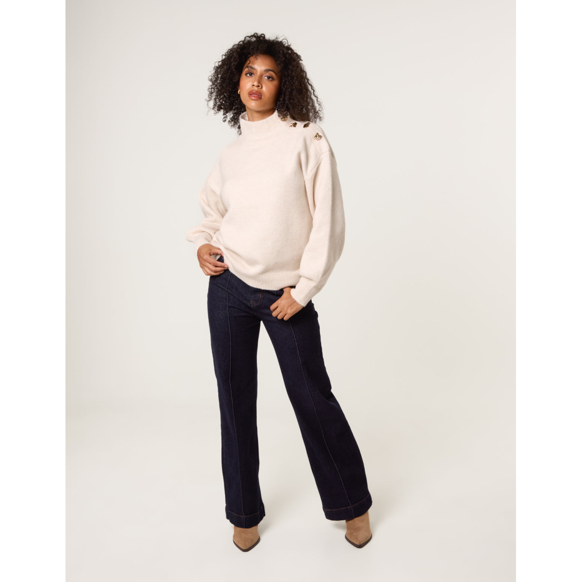 Elevate your everyday staples this season by wearing this brooch detailed jumper. Helping to create a simple but classy outfit when teamed with mom jeans and pumps.