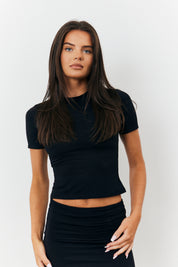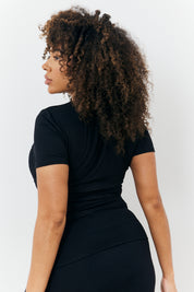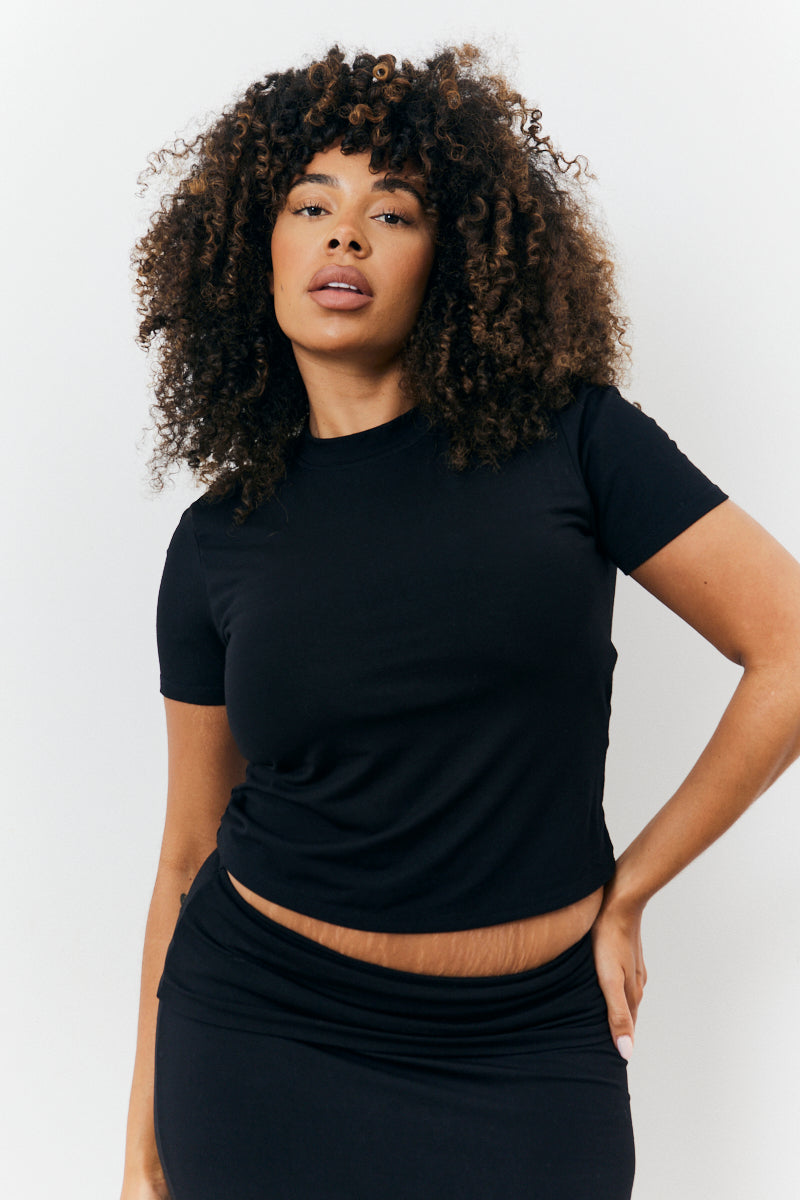 Our new black sculpting short sleeve t-shirt from the fits collection is your new essential. The perfect foundation for everyday looks, this go-to crew neck top is designed with added stretch to fit you flawlessly. Pair with jeans and trainers or a skirt and heels to suit your style.Â