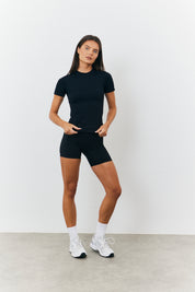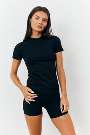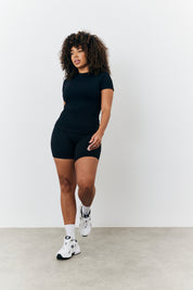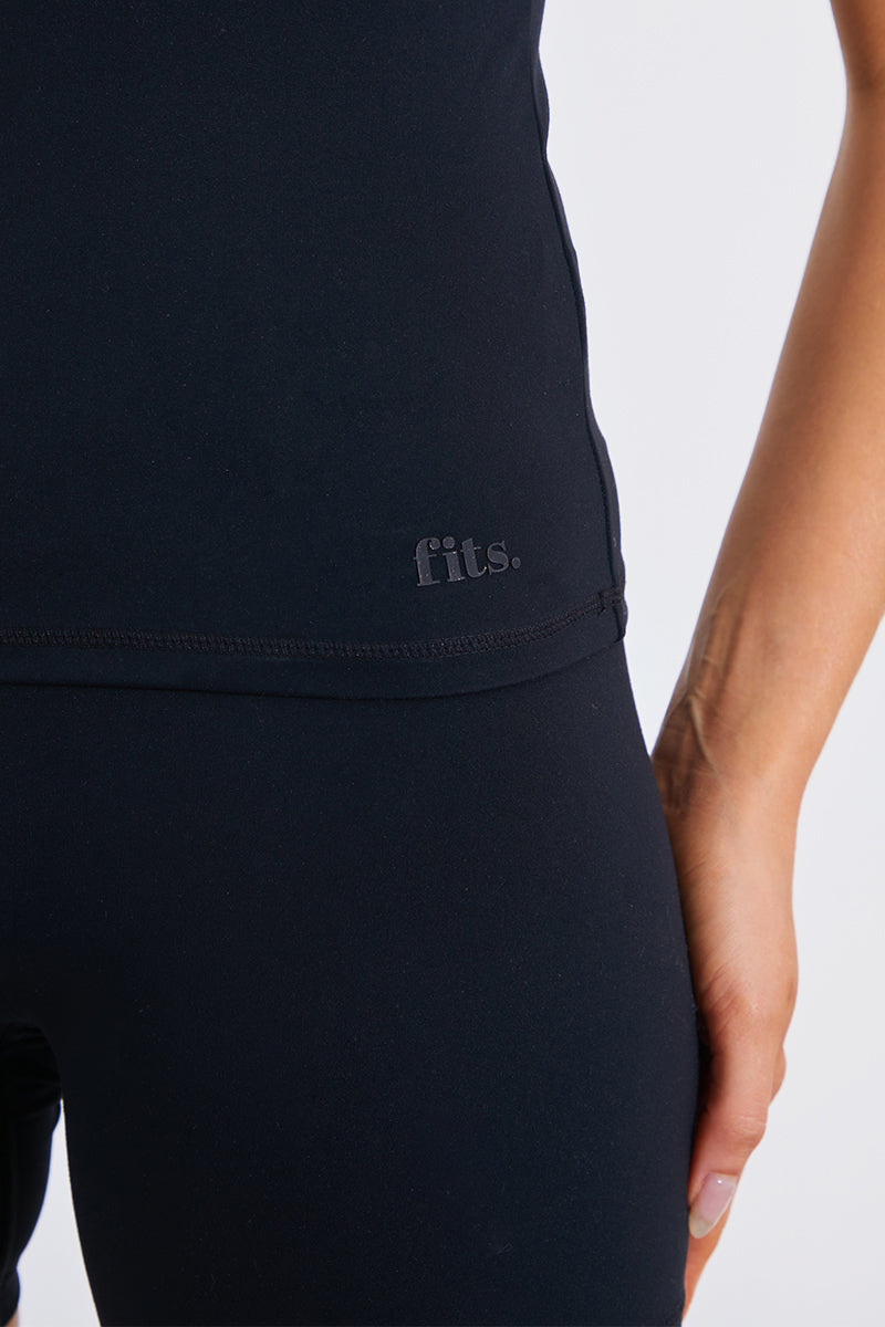 You can never go wrong with a black top and you will be reaching for our new fITS black soft touch short sleeve top from our new fITS Summer Active Collection all summer. Wear with the matching shorts for a comfy look.