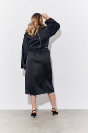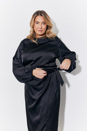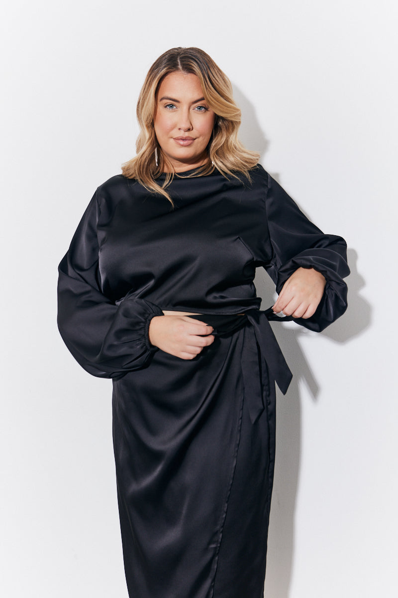 You can never go wrong with satin our new curved hem satin top will be your go to this season. Wear with the matching wrap skirt and heels for a look we are loving. Also the perfect option for your jeans and a nice top vibes.