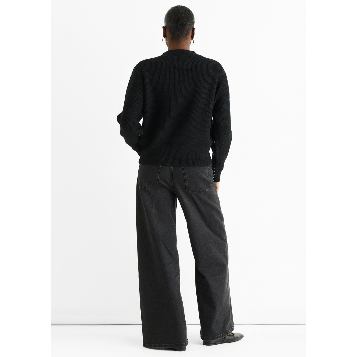 Stay cozy and stylish with our Black Pearl Studded High Neck Knit Jumper. With its bold design and comfortable fit, this jumper is perfect for any casual occasion. The high neck and pearl studded details add a touch of elegance to this must-have piece.