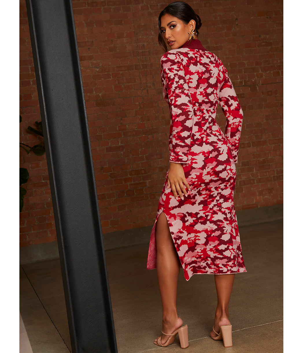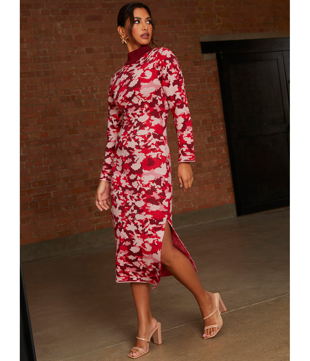 CHI CHI LONDON Chi Chi London Abstract Floral Knitted Midi Dress in Pink