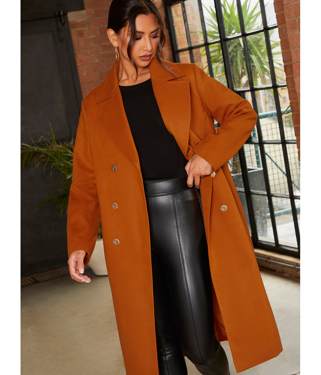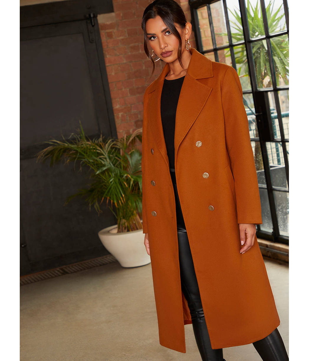 CHI CHI LONDON Chi Chi London Double Breasted Longline Coat in Orange